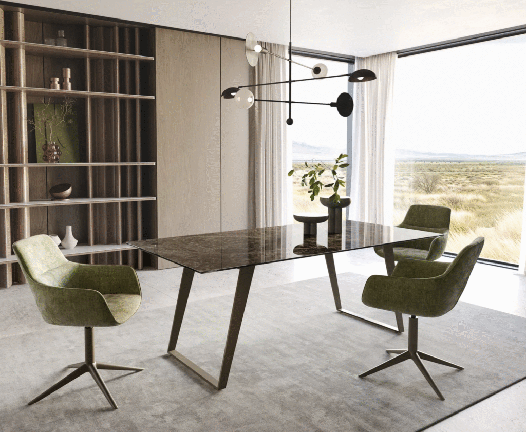 Hodí se do prostornějších jídelen, moderních interiérů i do designových kanceláří, kde má nábytek vlastní osobnost.