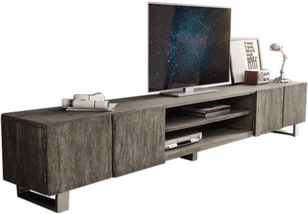 TV stolek New Live-Edge 145 cm akácie přírodní 3 dvířka kovová podnož černá