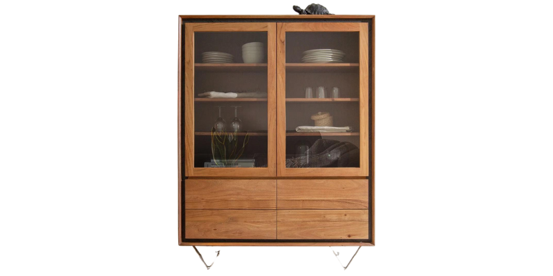 Skříň Sivela 90x150 cm mango hnědá kov černý 2 dvířka