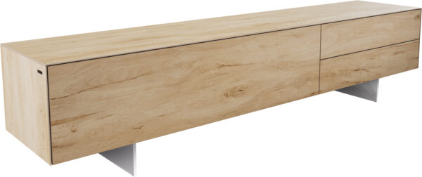 TV stolek Marellia 220 cm šedý 3 dvířka 2 zásuvky úhlová kovová podnož černá
