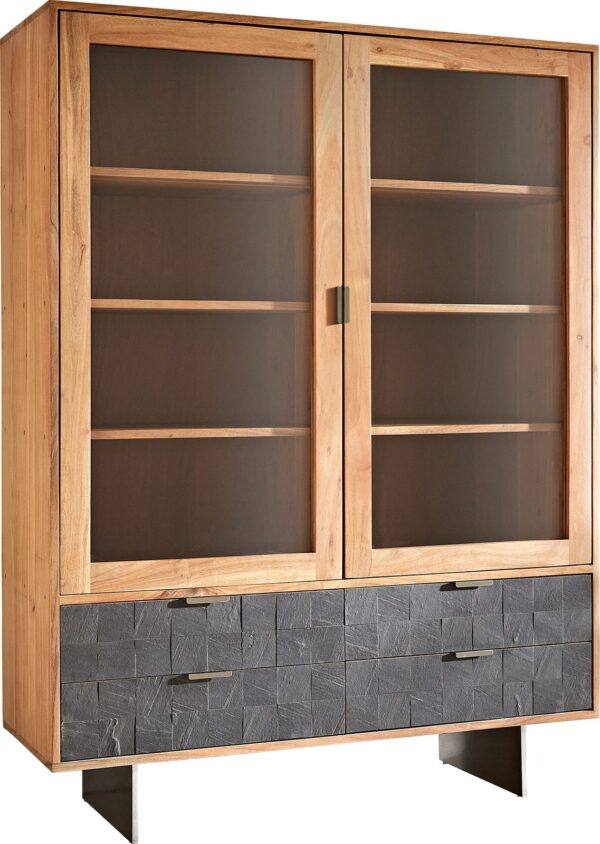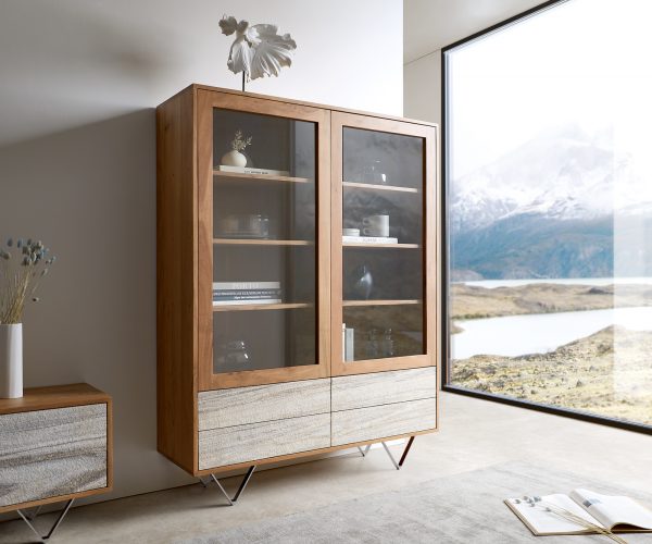 Vitrína Taza 75x210 cm akácie přírodní 4 dvířka barová skříň