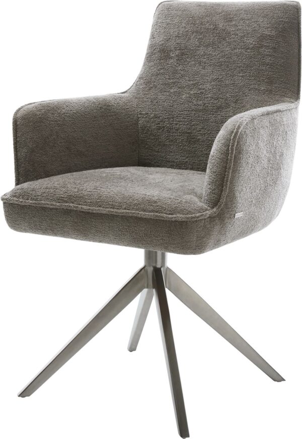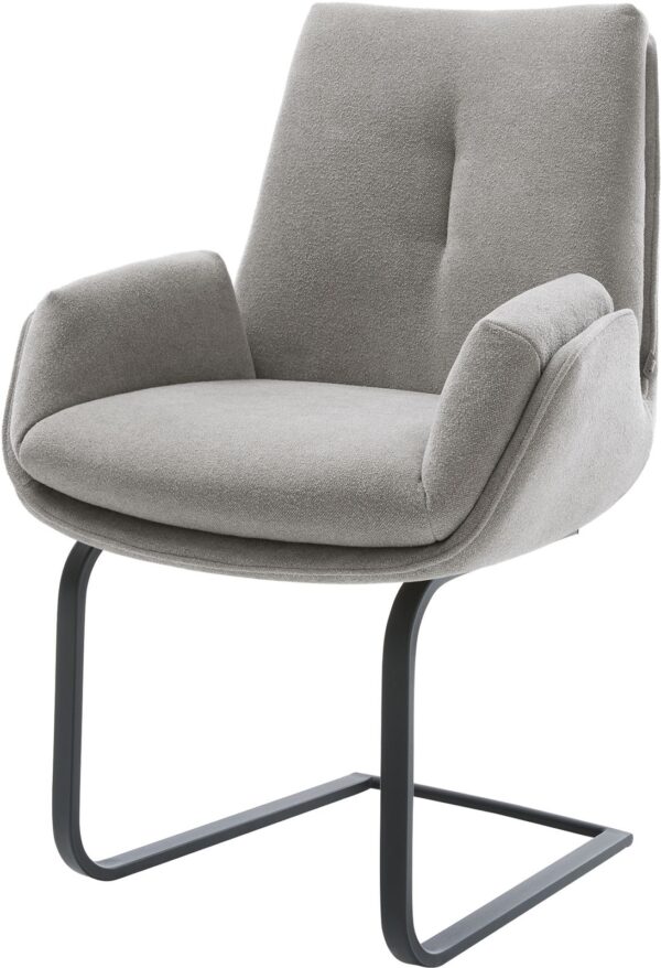 Jídelní židle Nube-Flex bouclé měkký tmavě béžová křížová podnož široká grafitová 360° otočná houpací funkce taštičkové pružiny
