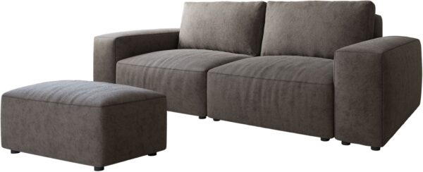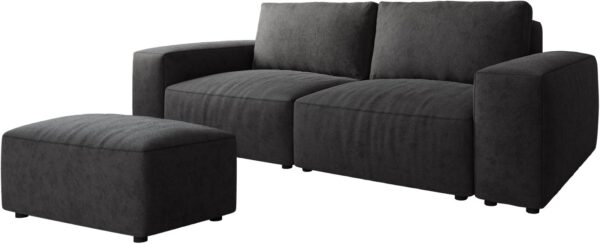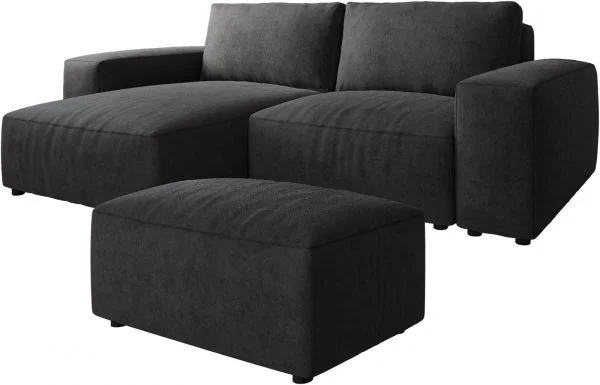 Pohovka XL Lanzo 270x130 cm koženka vintage antracitová s taburetem