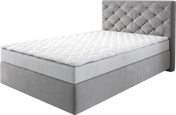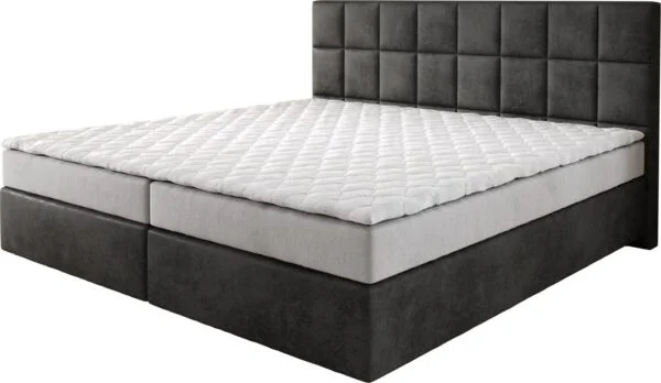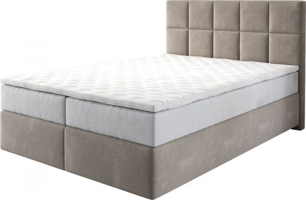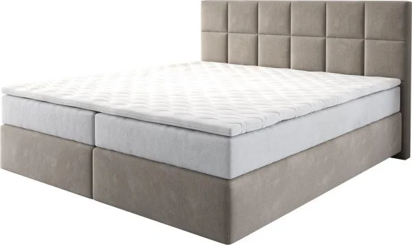 Čalouněná postel Dream-Well bouclé krémovo-bílá 200x200 cm bonellová matrace PU topper