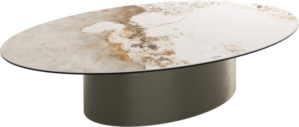 Konferenční stolek Edge organický 140x76 cm keramika Laminam® Noir Desir hnědá Conis metalická stříbrná