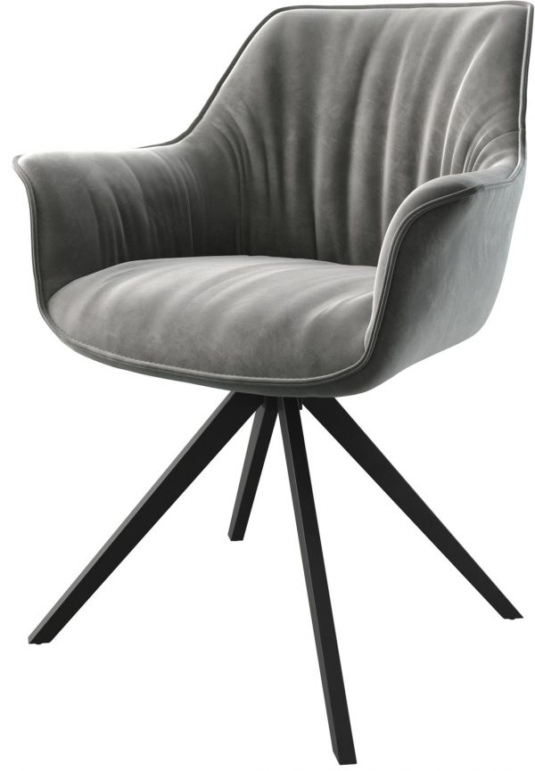 Jídelní židle Xana-Flex s područkami pravá kůže černá křížová podnož široká titanová barva 360° otočná houpací funkce taštičkové pružiny