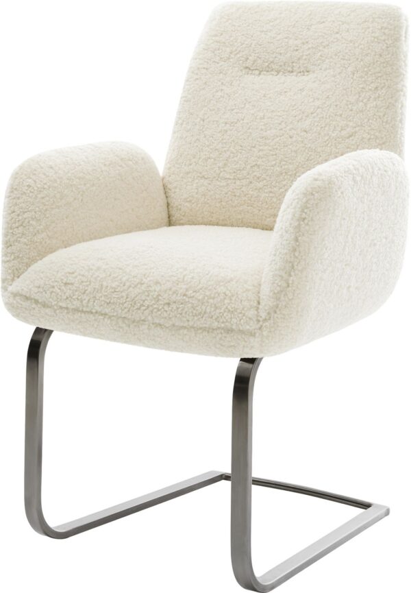 Jídelní židle Pejo-Flex tkanina Měkký béžová tenká podnož nerezová ocel taštičkové pružiny