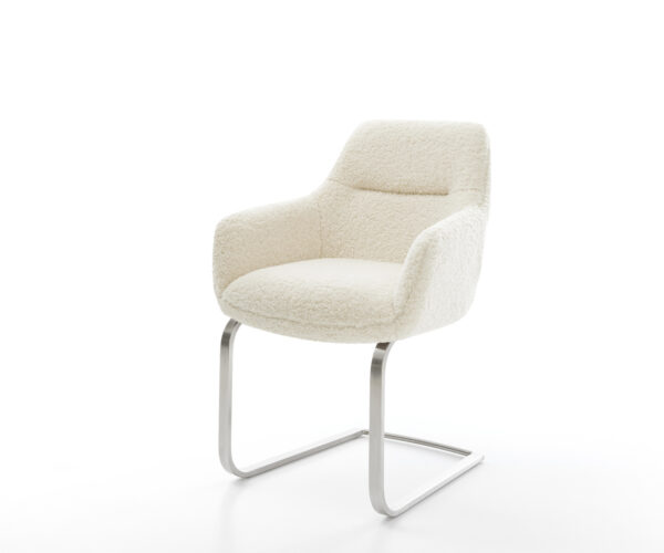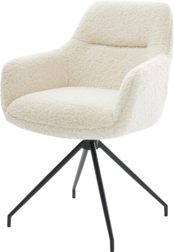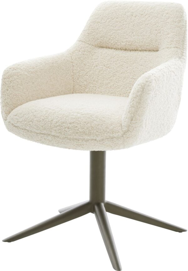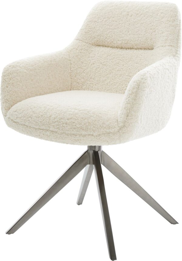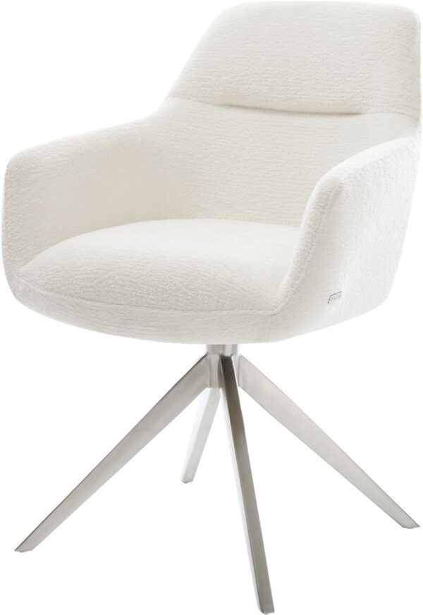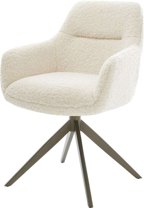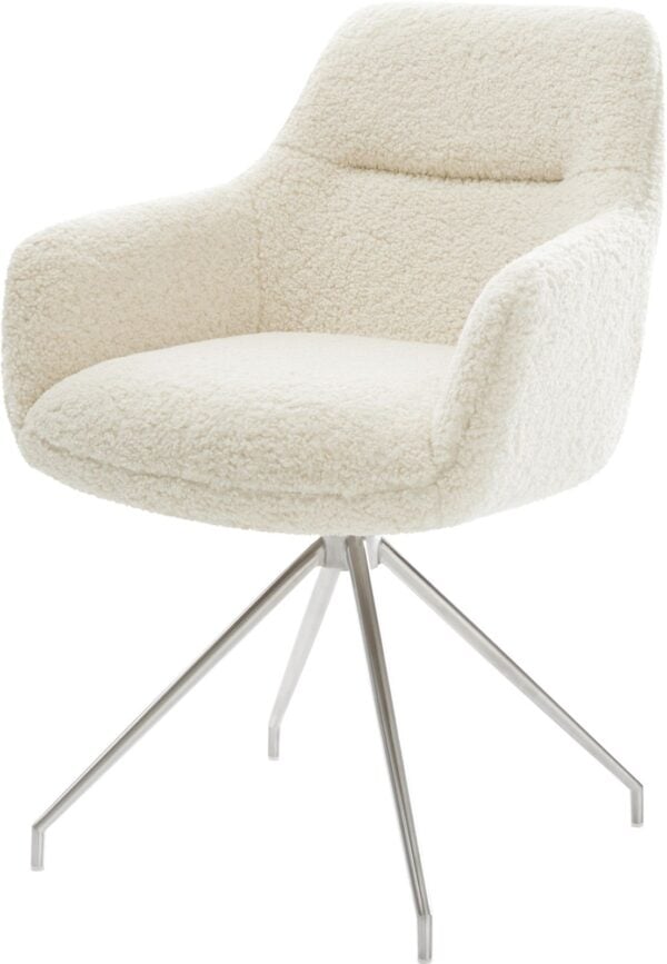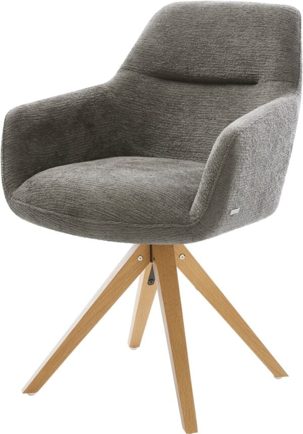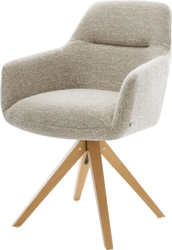 Jídelní židle Pejo-Flex tkanina Měkký béžová dřevěná podnož hranatý přírodní 180° otočný taštičkové pružiny