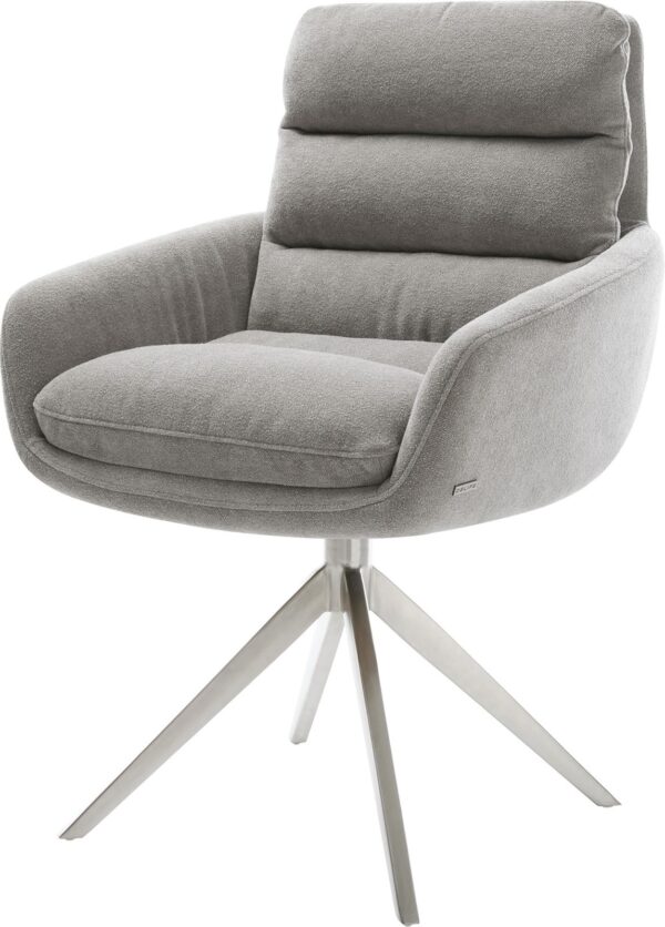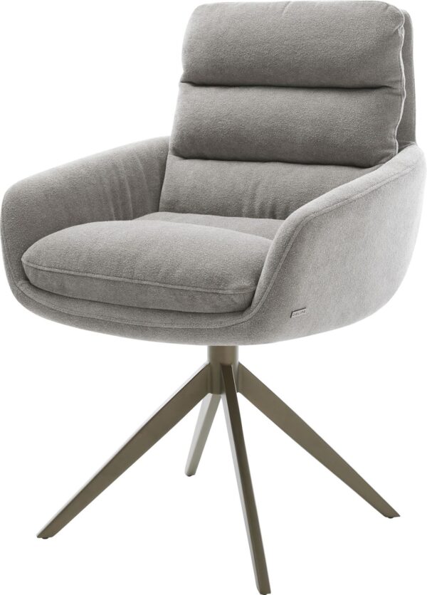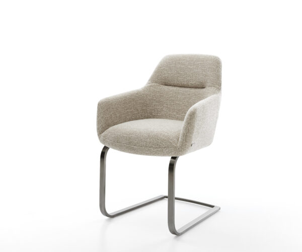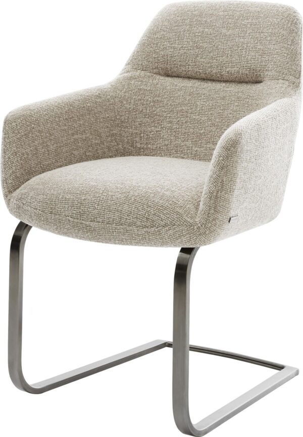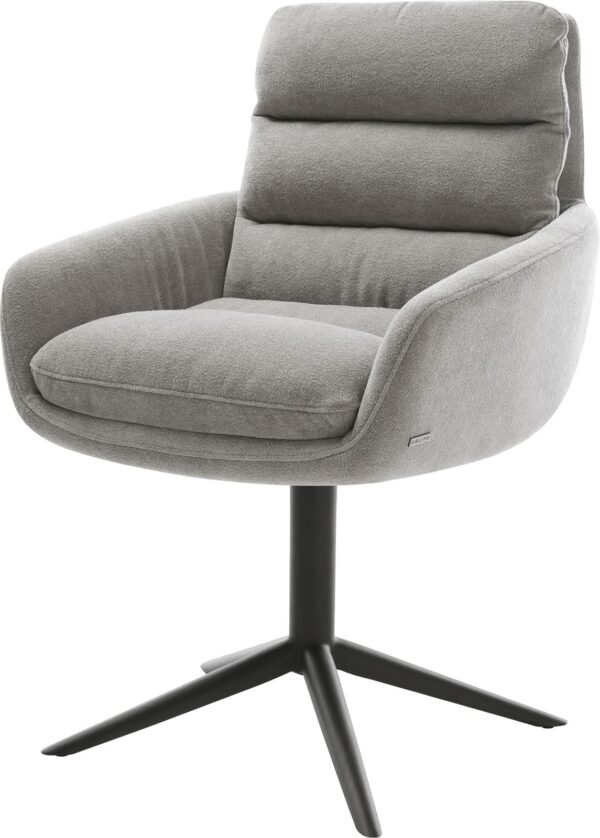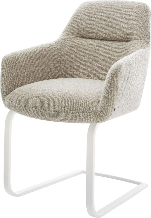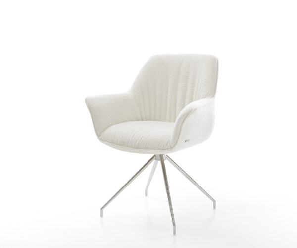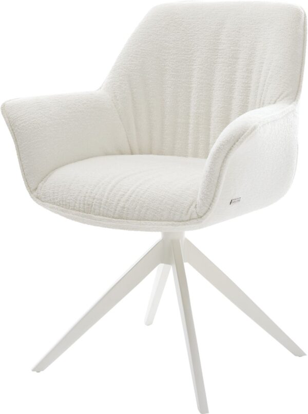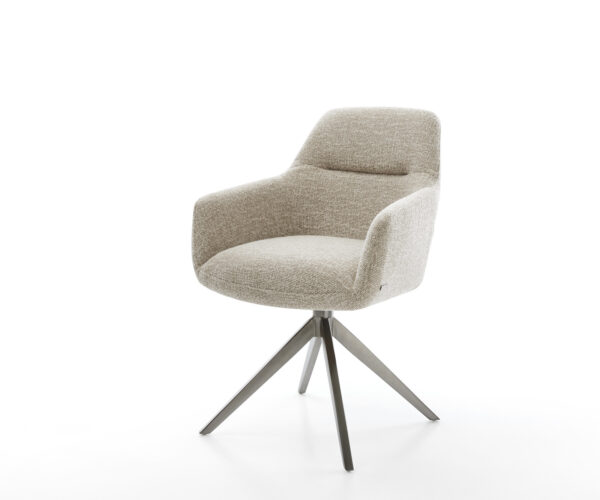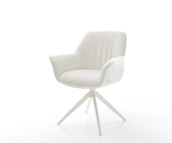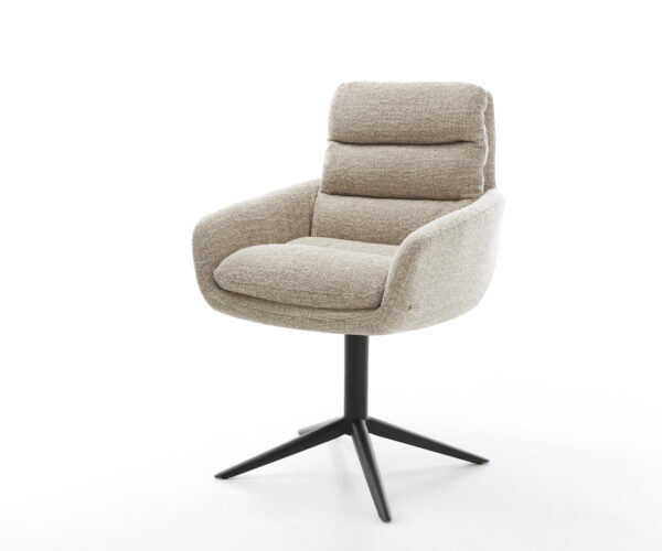 Jídelní židle Abelia-Flex s područkami bouclé měkký béžová křížová podnož široká černá 360° otočný houpací funkce