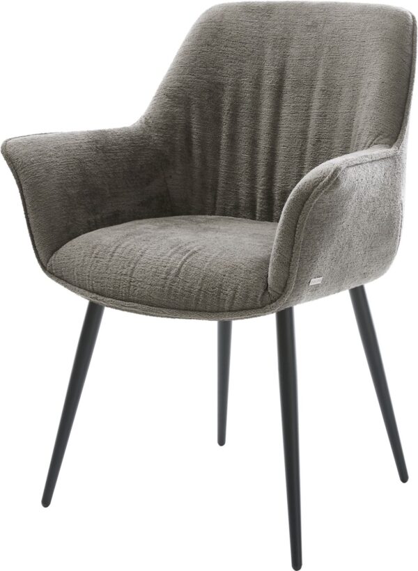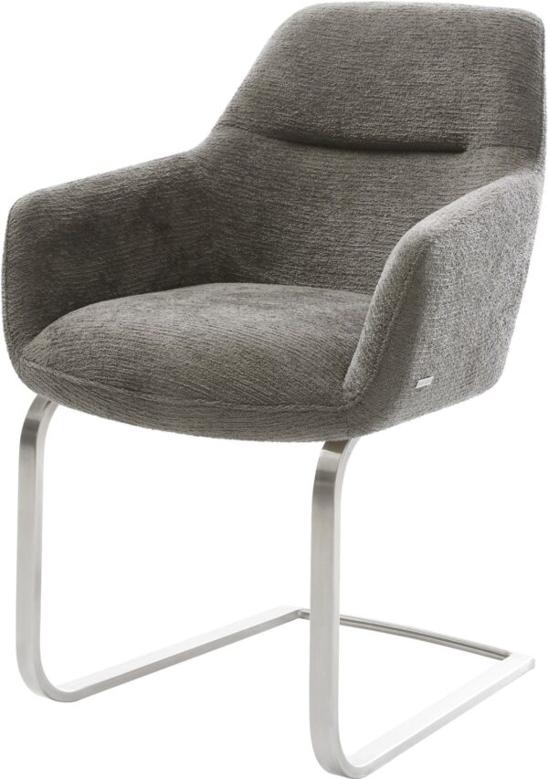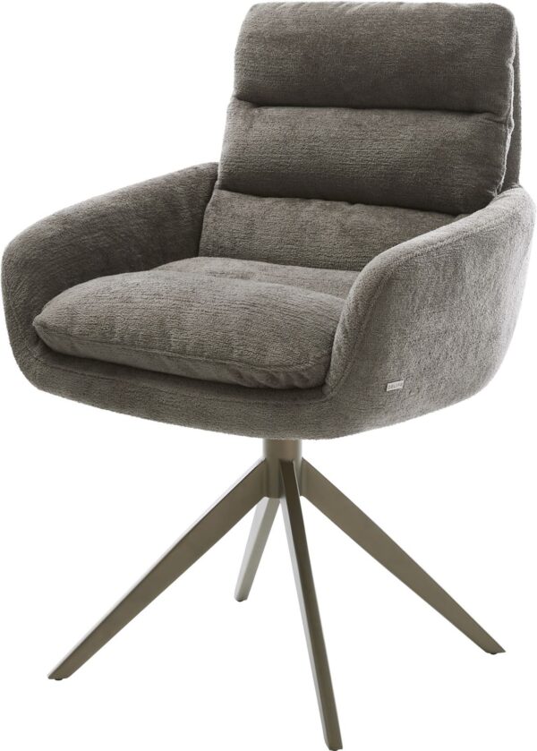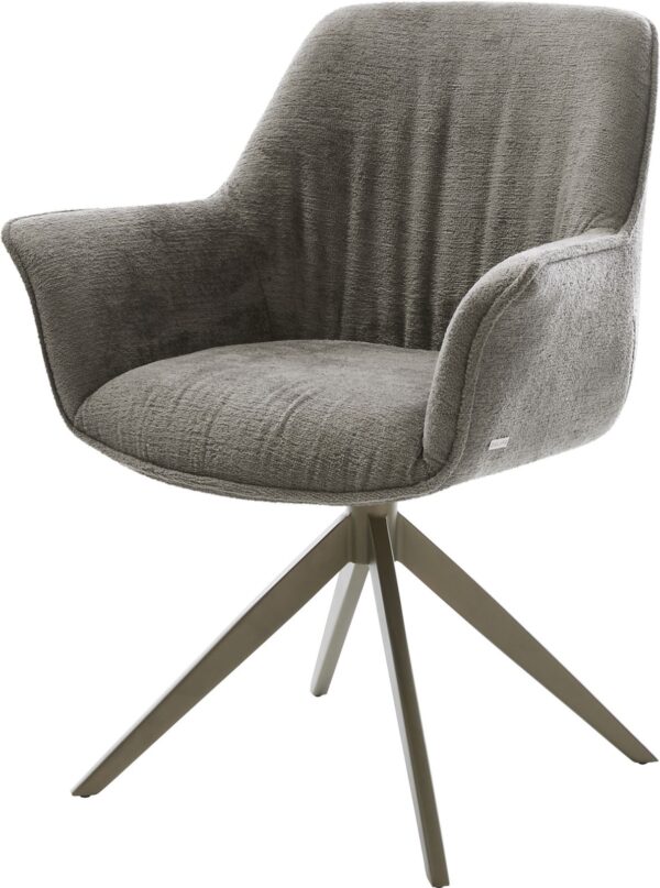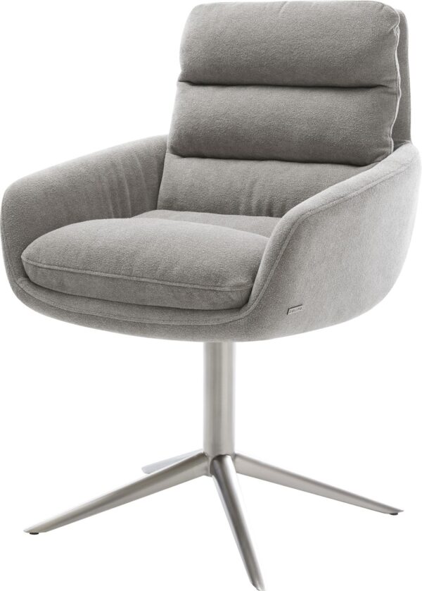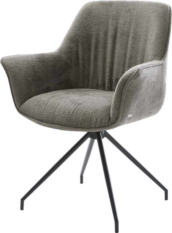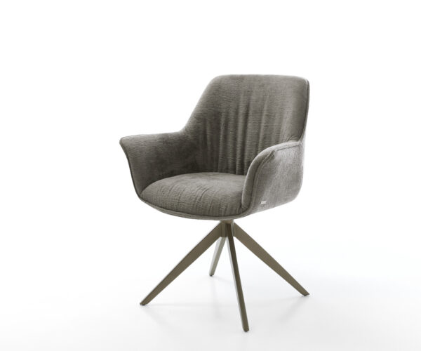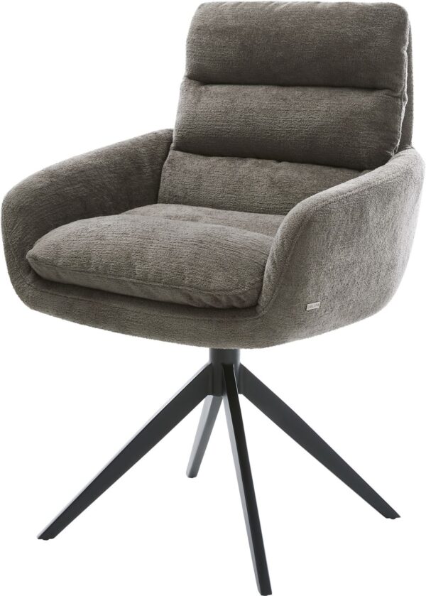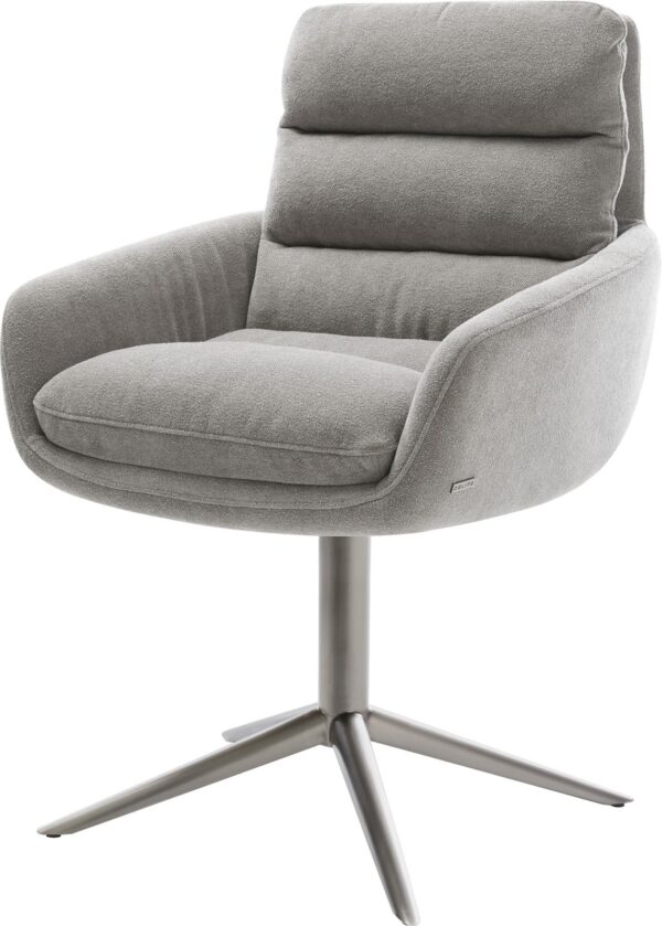 Jídelní židle Abelia-Flex s područkami bouclé měkký béžová křížová podnož široká černá 360° otočný houpací funkce