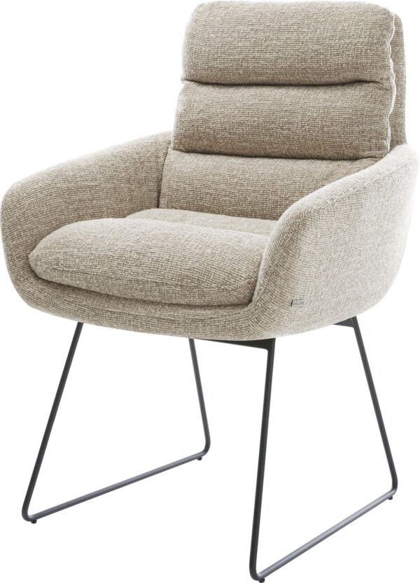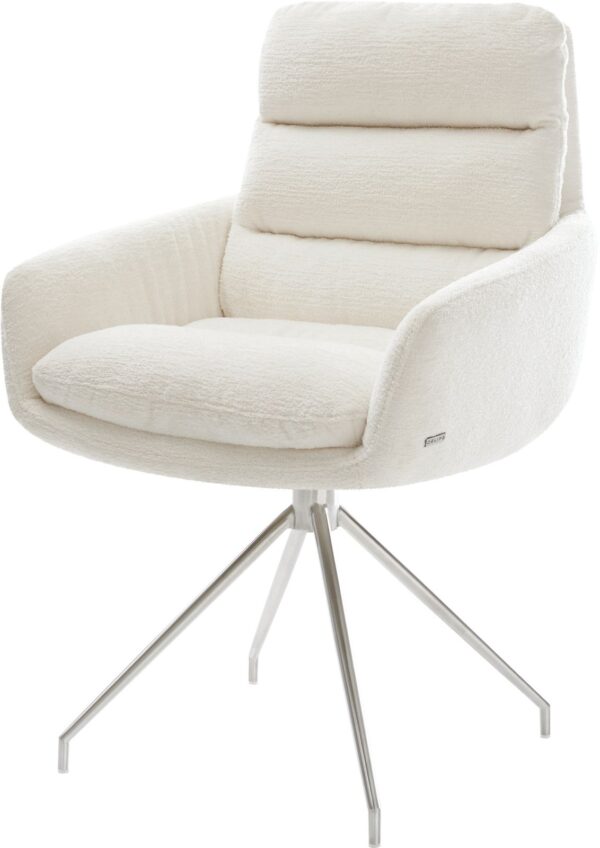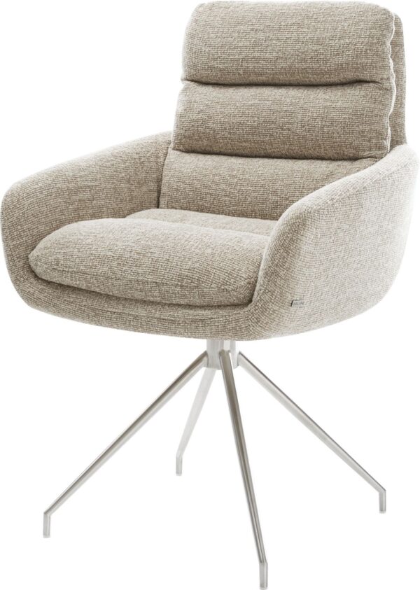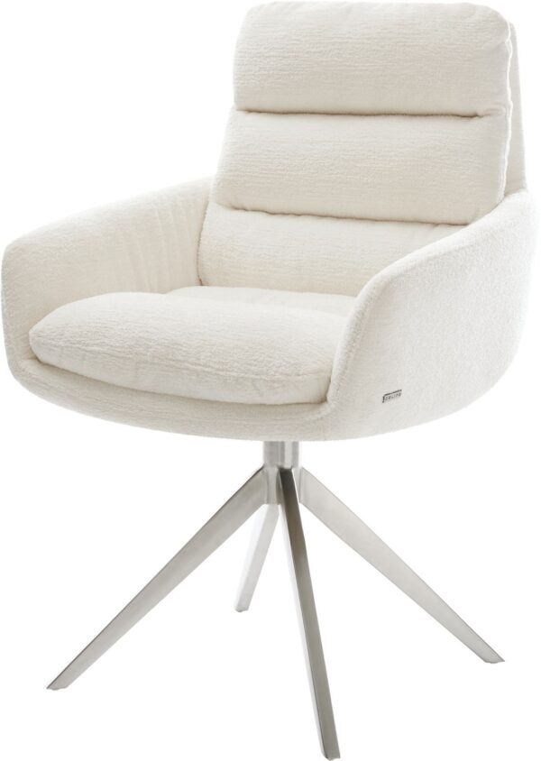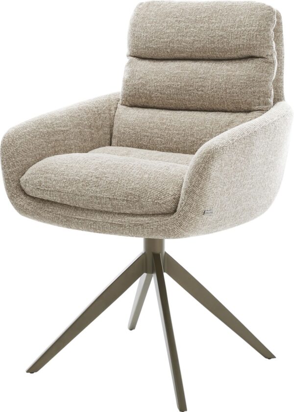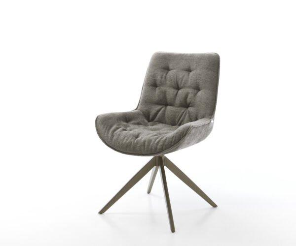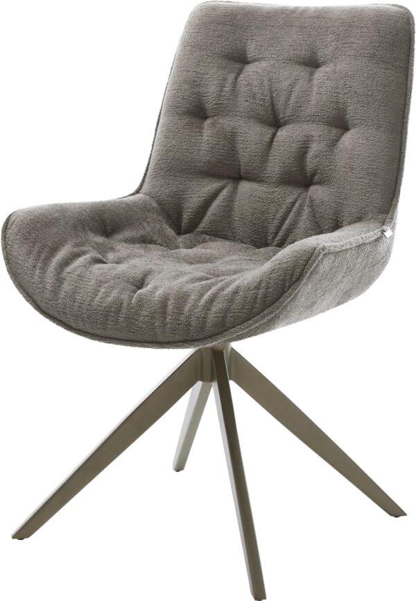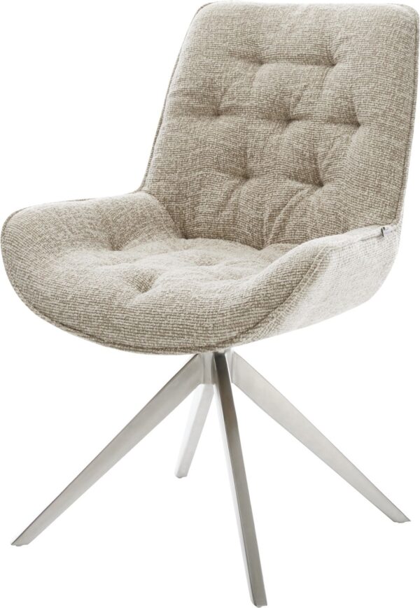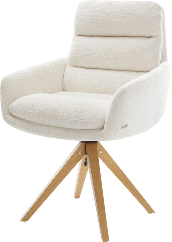Jídelní židle Taimi-Flex bouclé měkký tmavě béžová dřevěná podnož hranatý přírodní 180° otočný