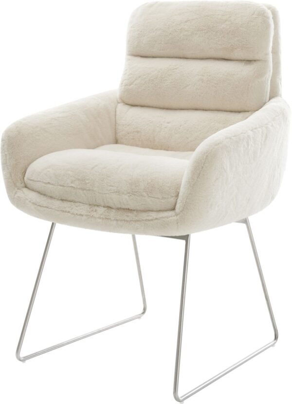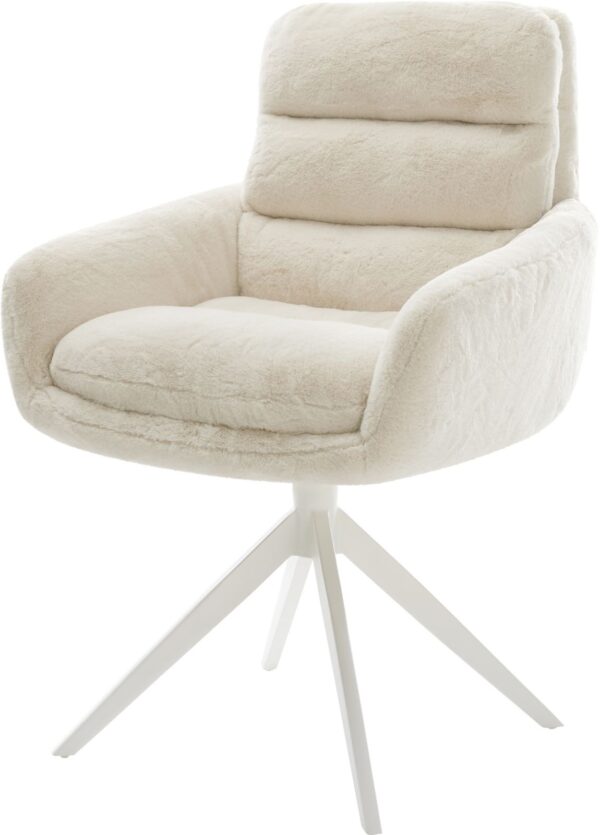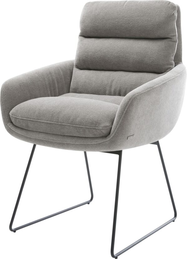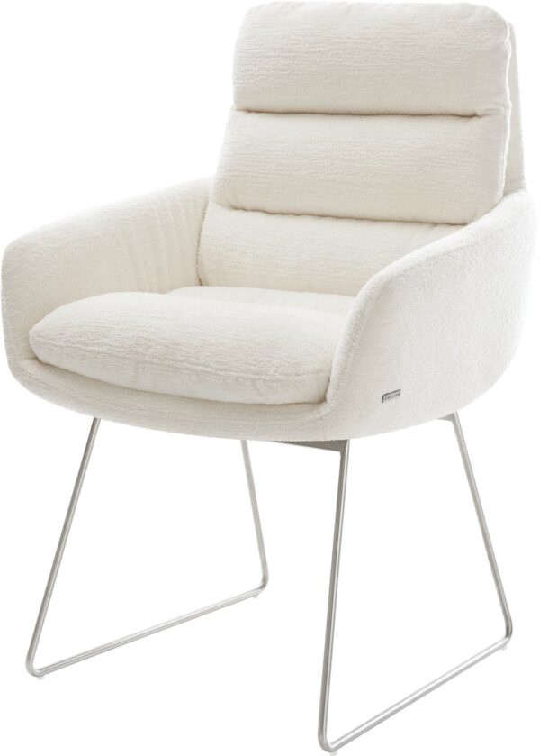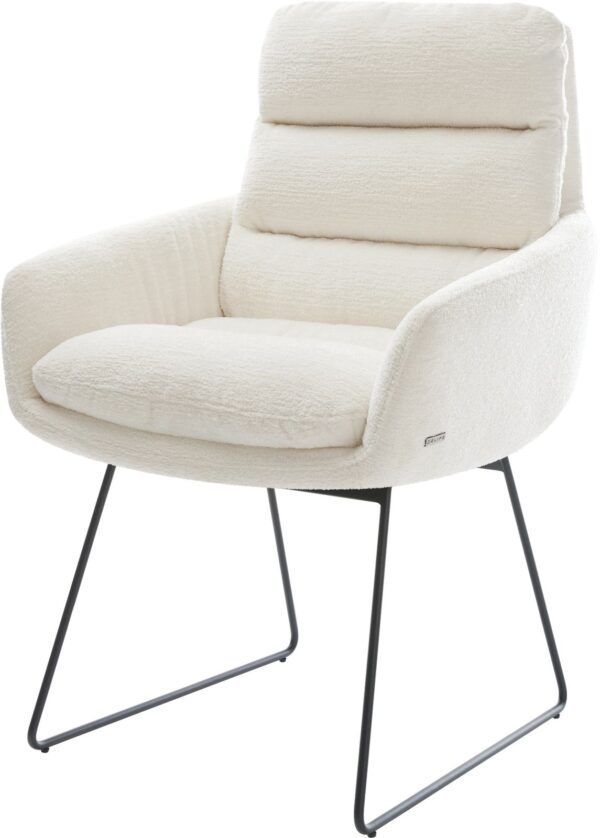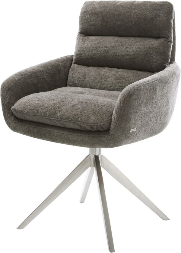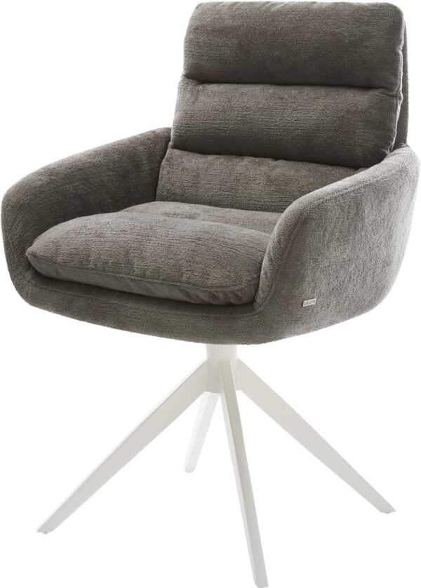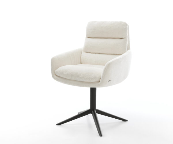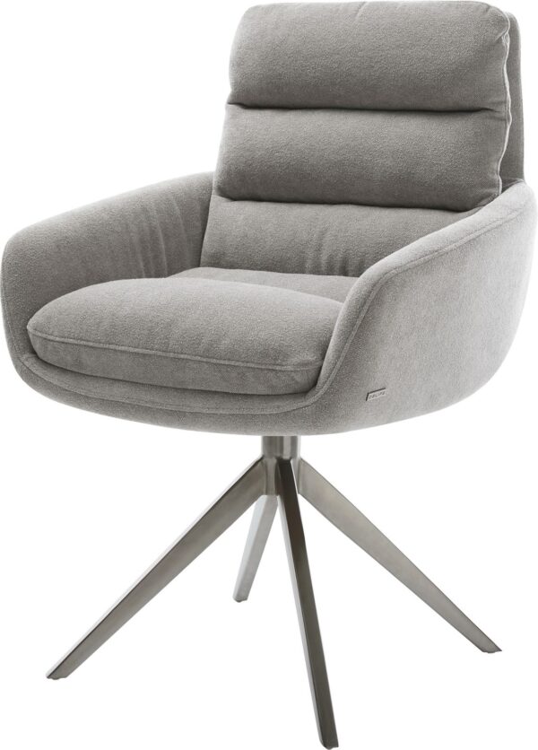 Jídelní židle Taimi-Flex bouclé měkký tmavě béžová dřevěná podnož hranatý přírodní 180° otočný
