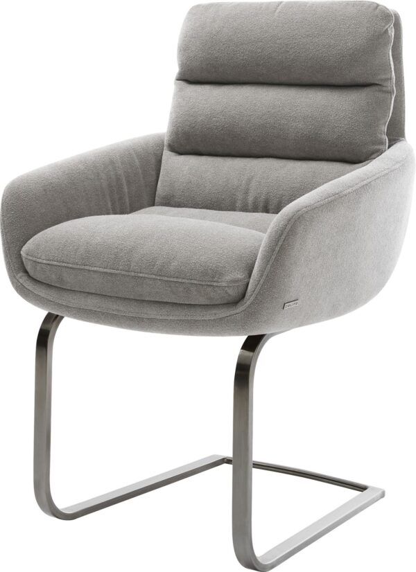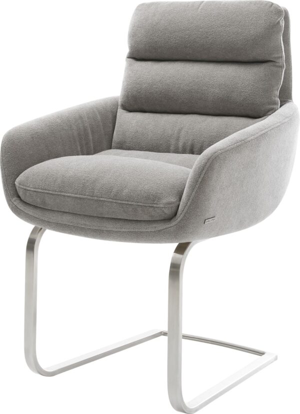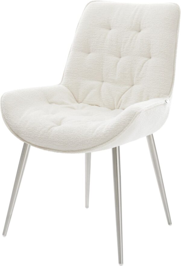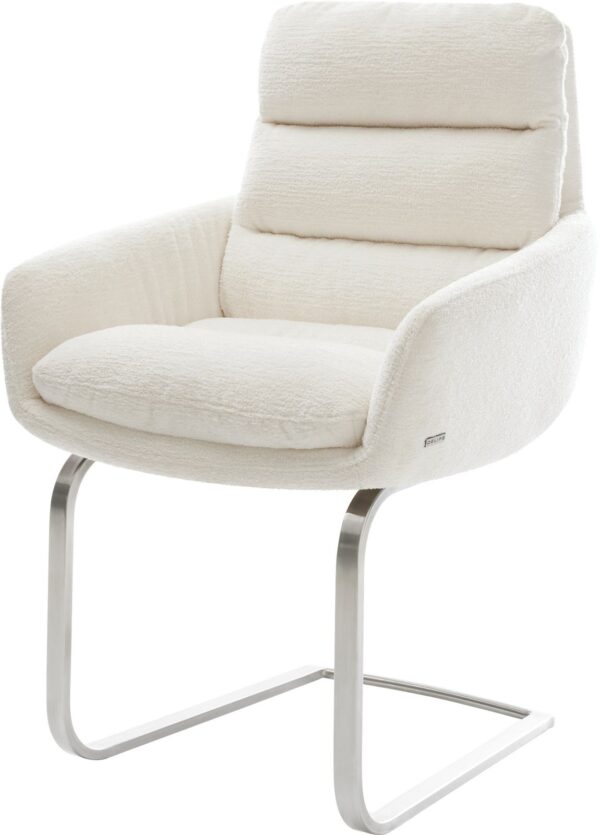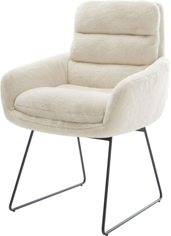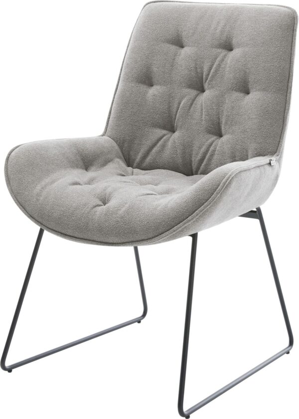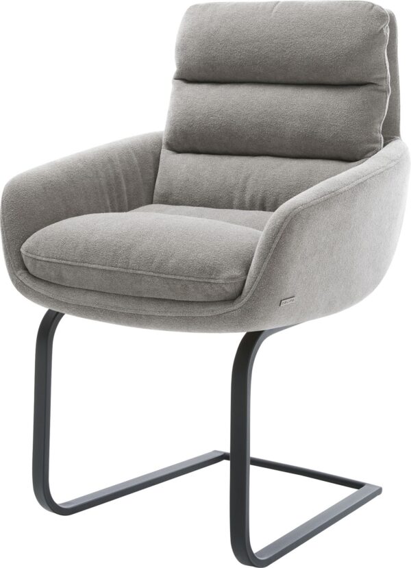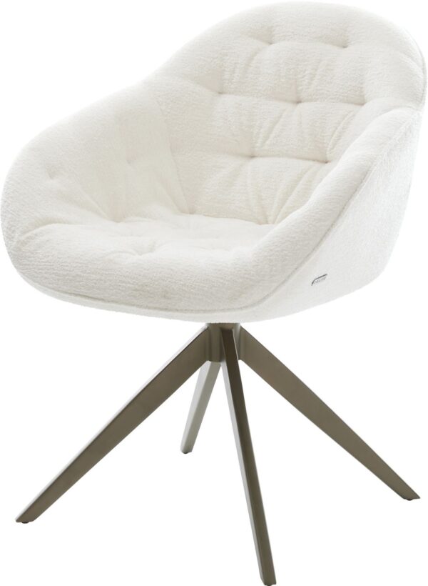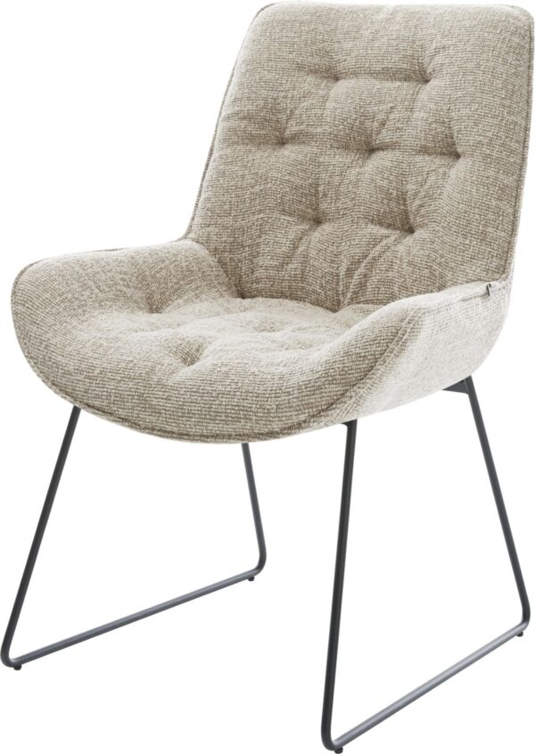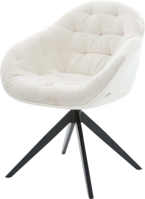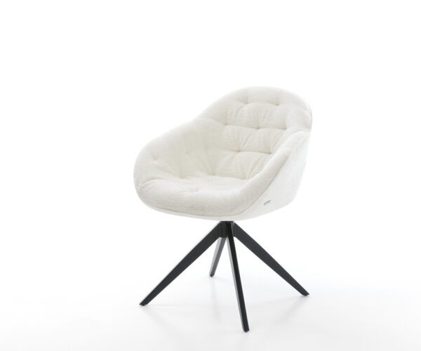 Jídelní židle Greg-Flex bouclé měkký tmavě béžová křížová podnož široká černá 360° otočný houpací funkce taštičkové pružiny