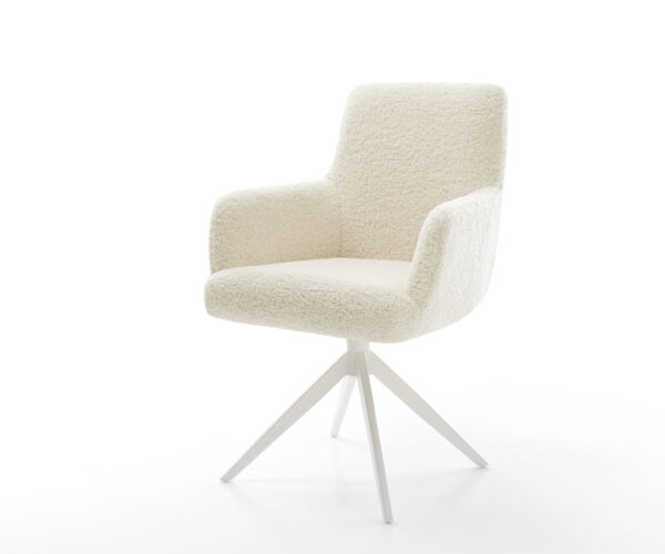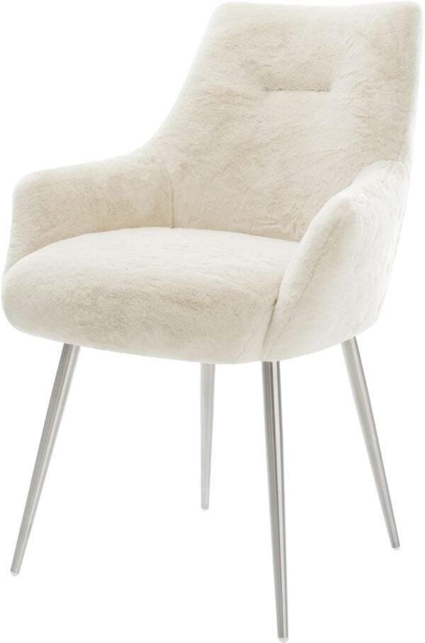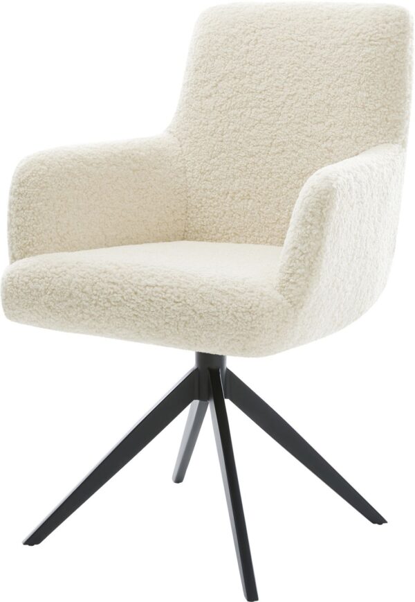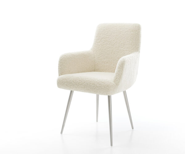 Jídelní židle Vinka-Flex s područkami bouclé měkký béžová jídelní židle plochá nerezová ocel taštičkové pružiny