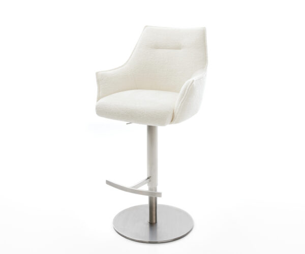 Barová židle Alja-Flex bouclé měkký béžová otočná podnož výškově nastavitelná nerezová ocel stříbrná taštičkové pružiny