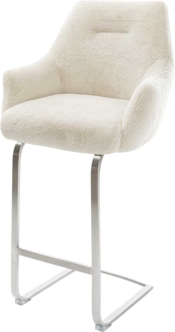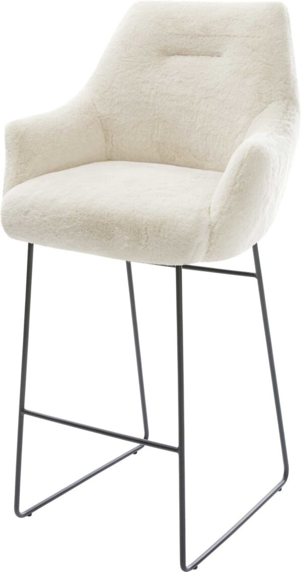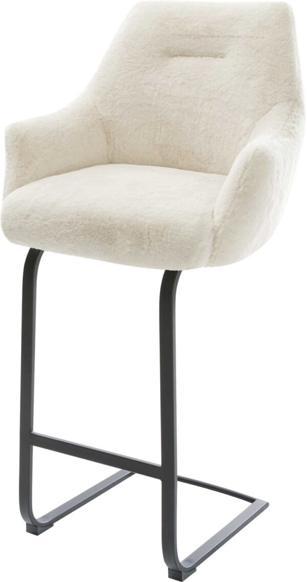Barová židle Alja-Flex plyšová látka béžová tenká podnož kov černá taštičkové pružiny