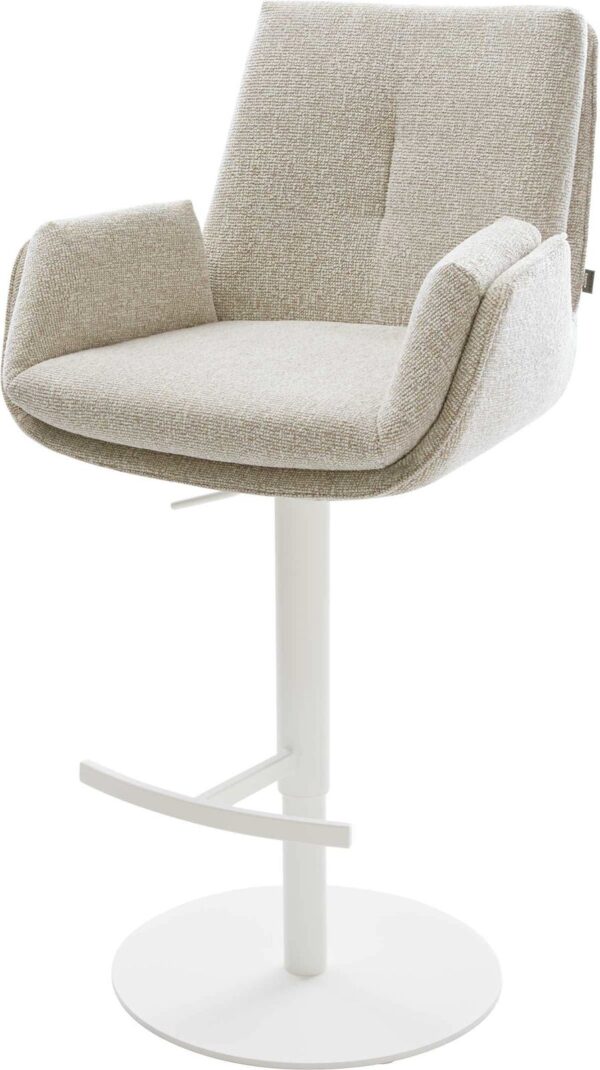 Barová židle Clea-Flex látka Měkký béžová otočná podnož výškově nastavitelná kov bílá