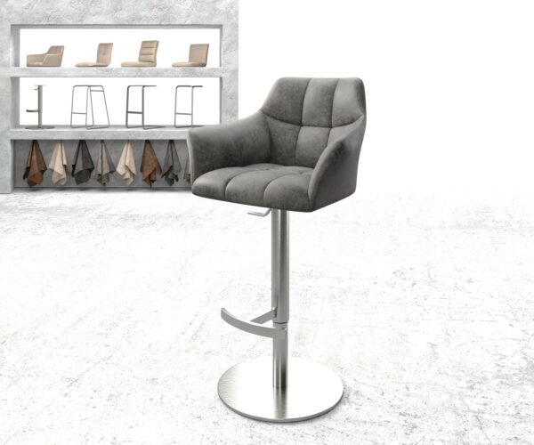 Barová židle Yulo-Flex vintage šedá otočná podnož výškově nastavitelná nerezová ocel