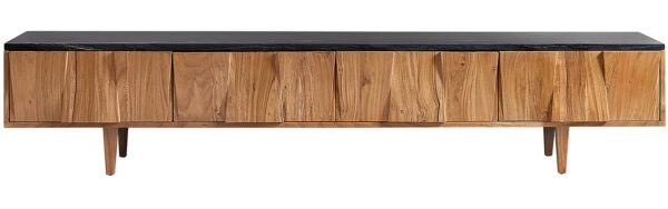 TV stolek Shia 200 cm akácie přírodní mramor černá 4 dvířka
