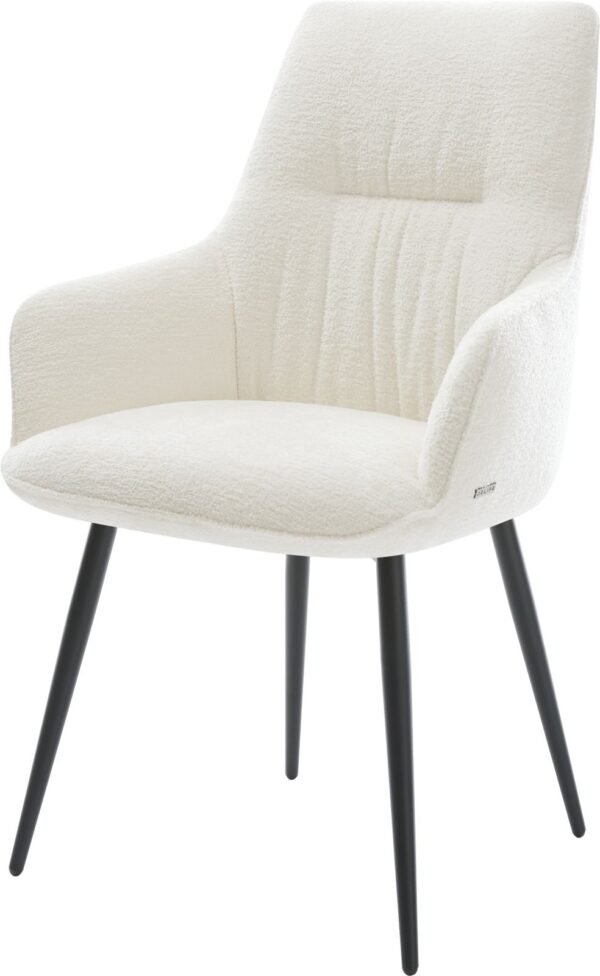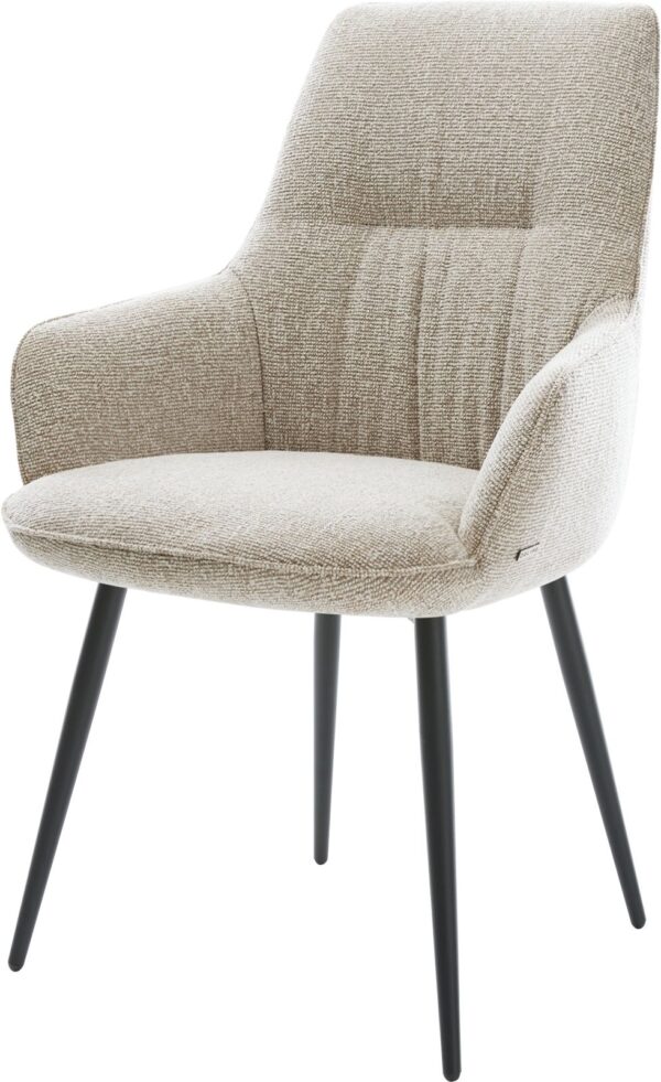 Jídelní židle Zelia-Flex s područkami plyšový manšestr béžová 4-nohá zúžená černá taštičkové pružiny
