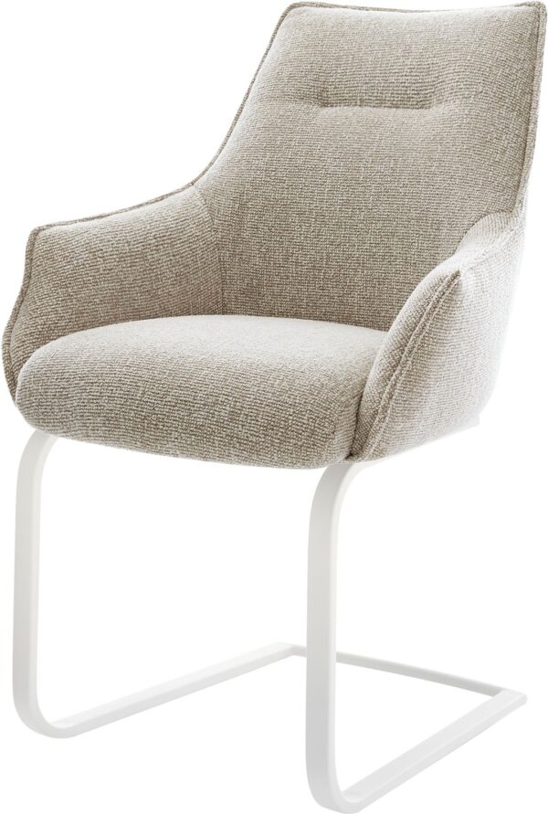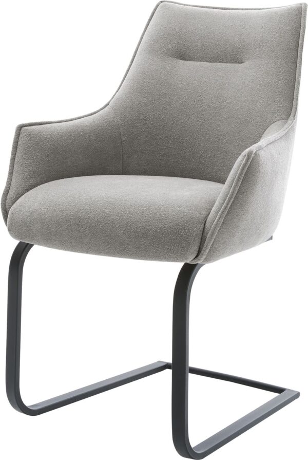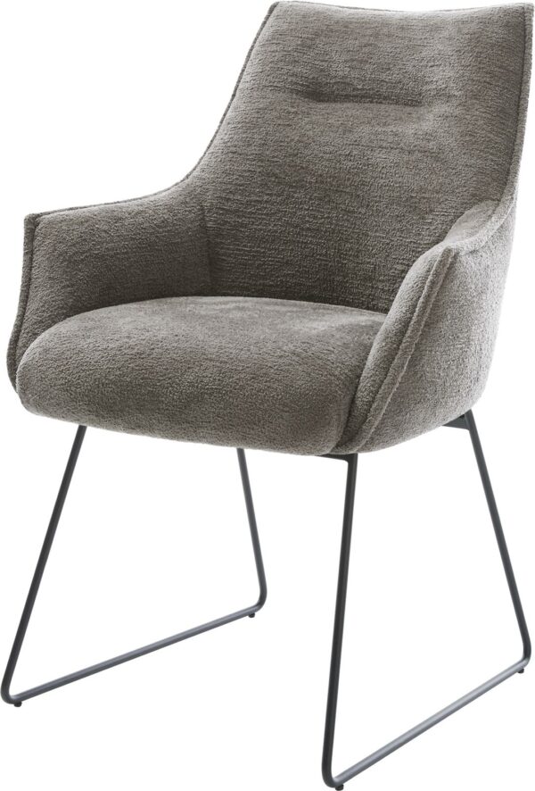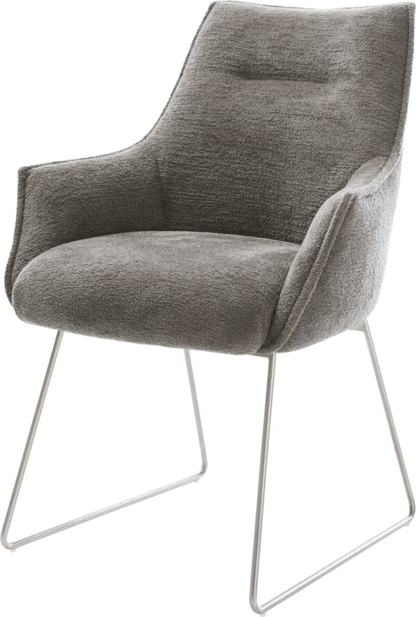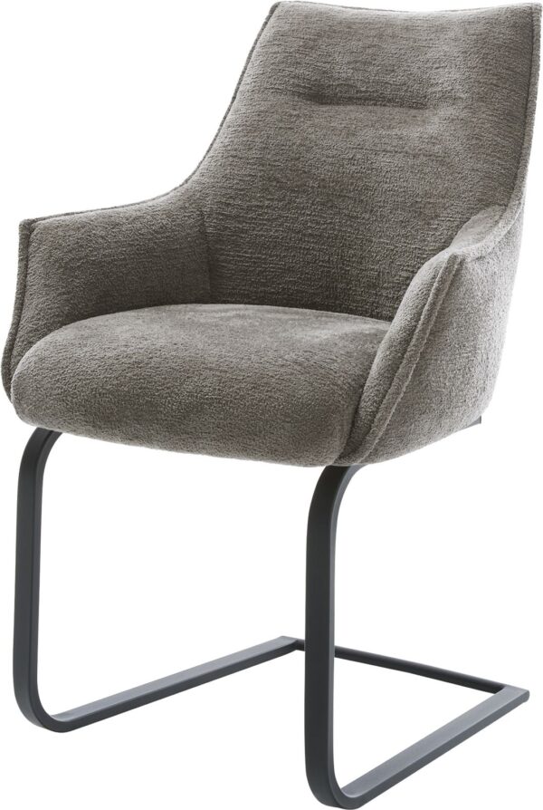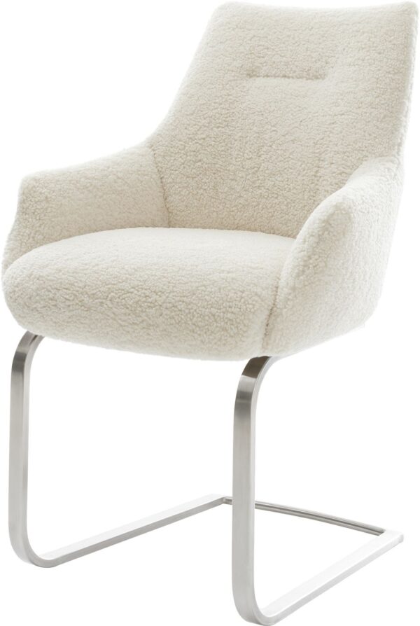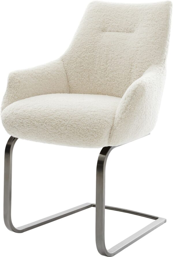 Jídelní židle Alja-Flex s područkami bouclé měkký tmavě béžová jídelní židle plochá nerezová ocel taštičkové pružiny