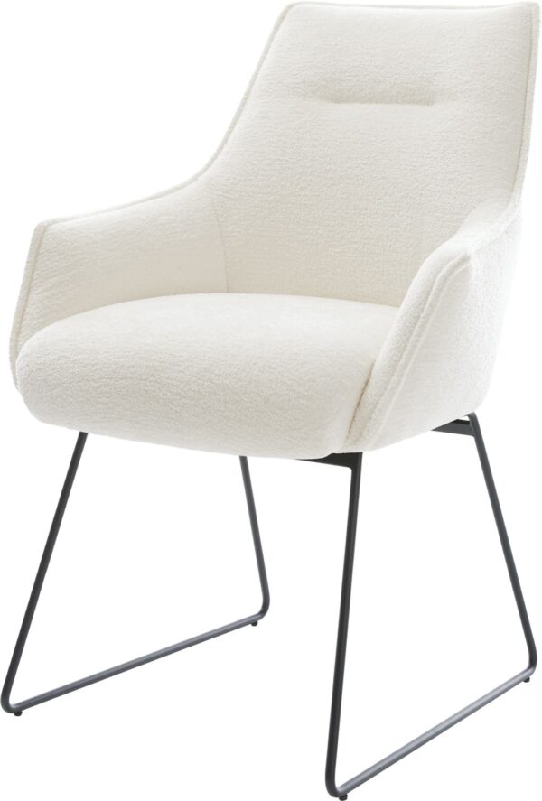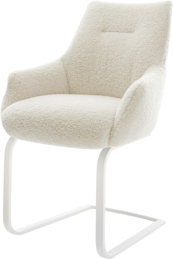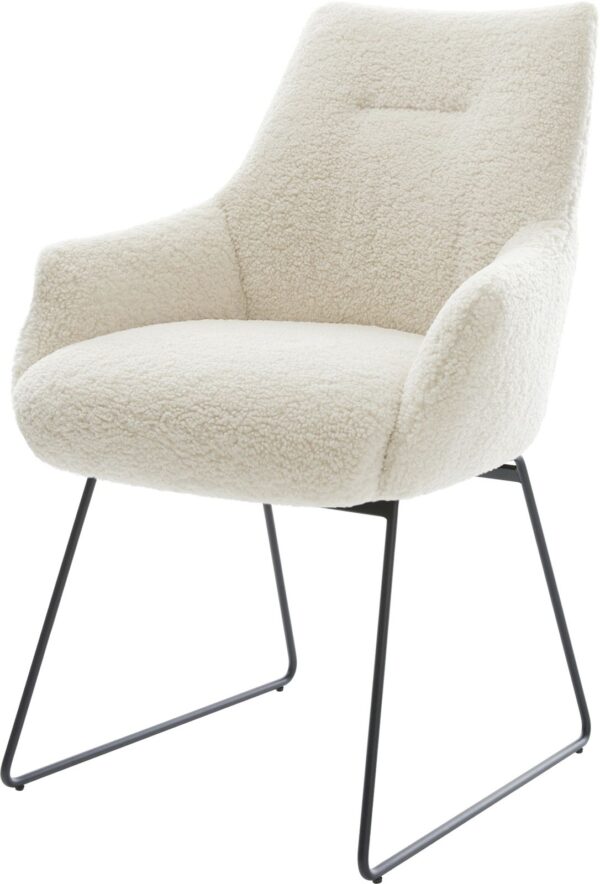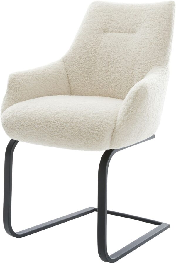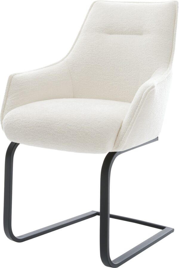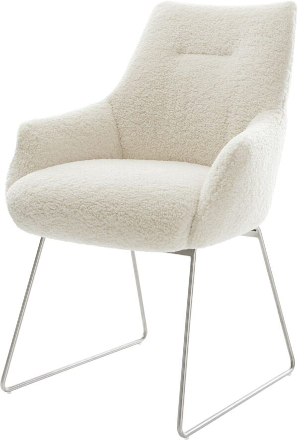Jídelní židle Alja-Flex s područkami bouclé měkký tmavě béžová jídelní židle plochá nerezová ocel taštičkové pružiny