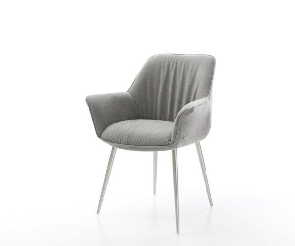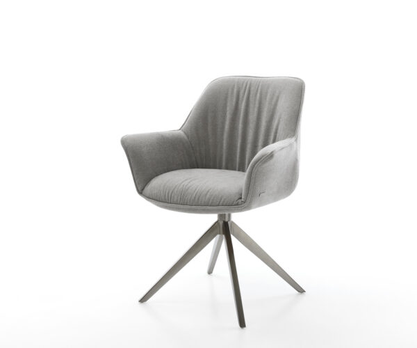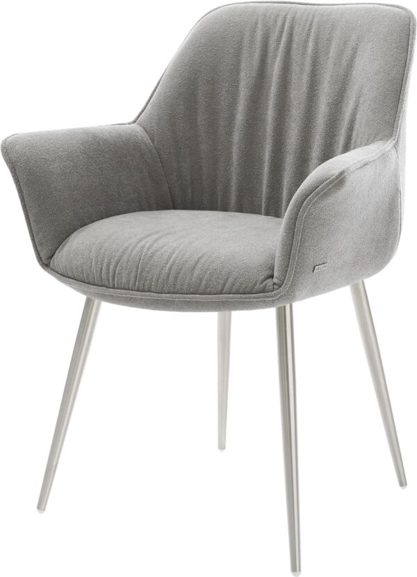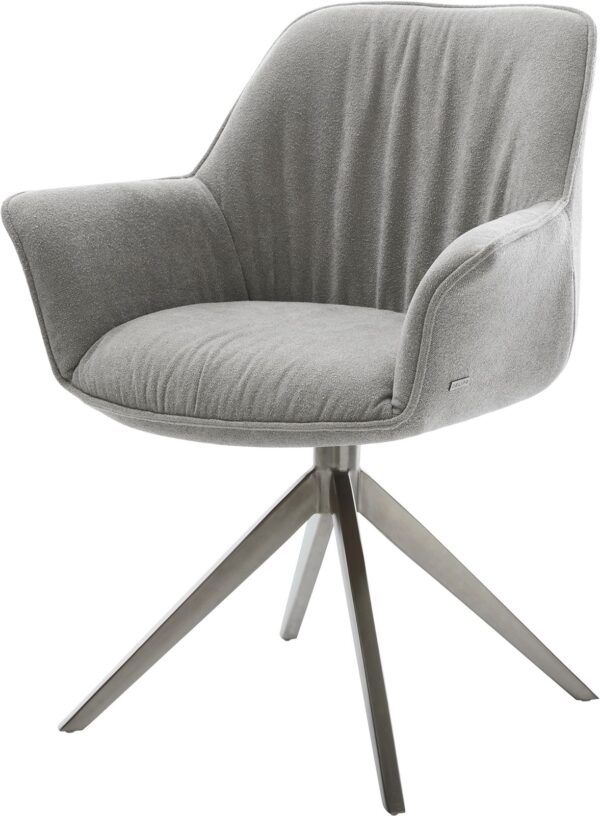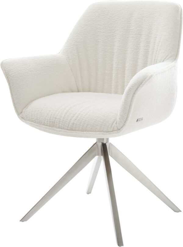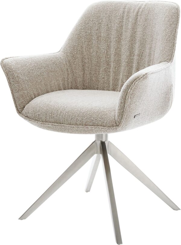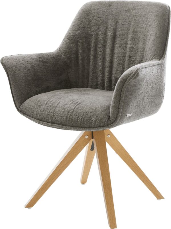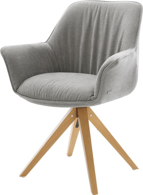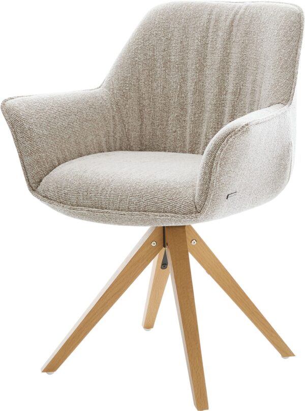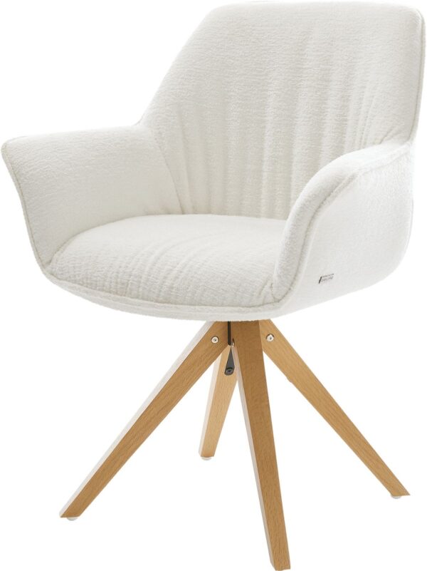 Jídelní židle Keila-Flex s područkami bouclé měkký tmavě béžová dřevěná podnož hranatá přírodní 180° otočná