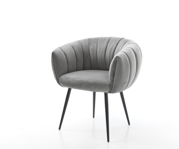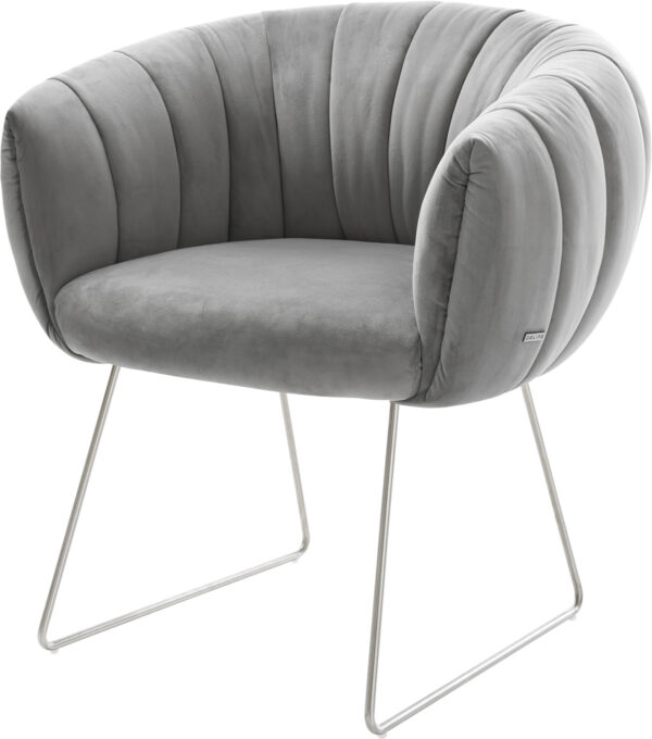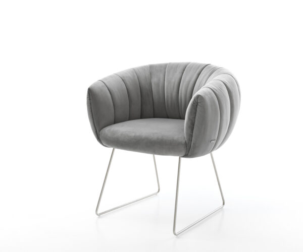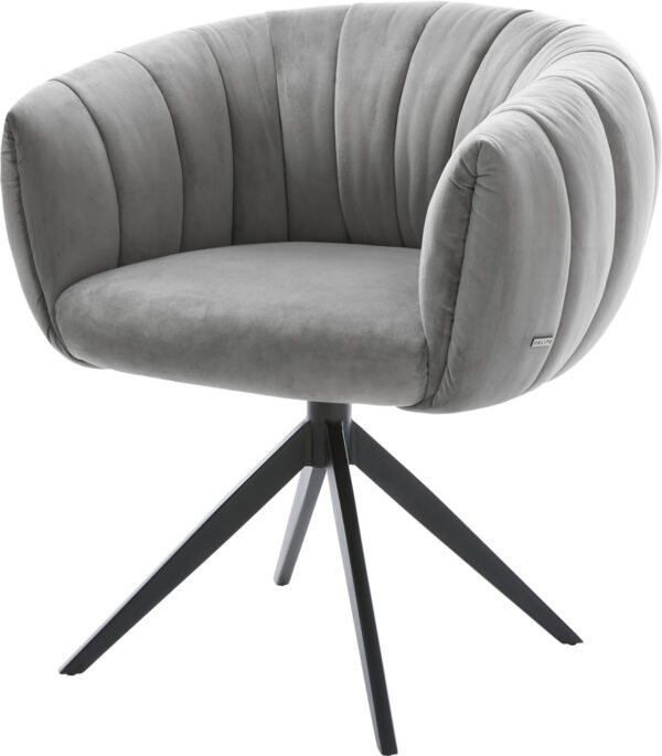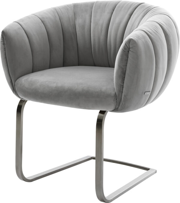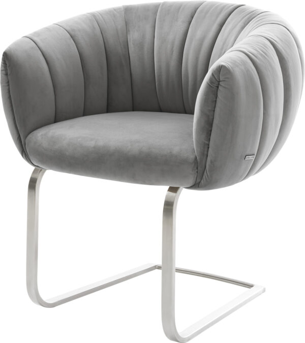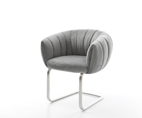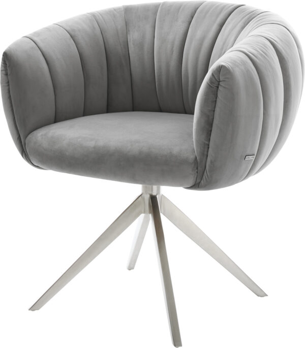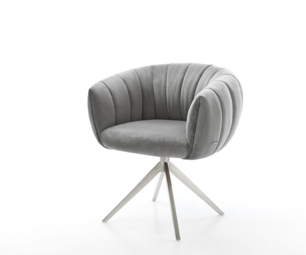 Jídelní židle Jada-Flex samet šedá křížová podnož široká nerezová ocel 360° otočný houpací funkce taštičkové pružiny