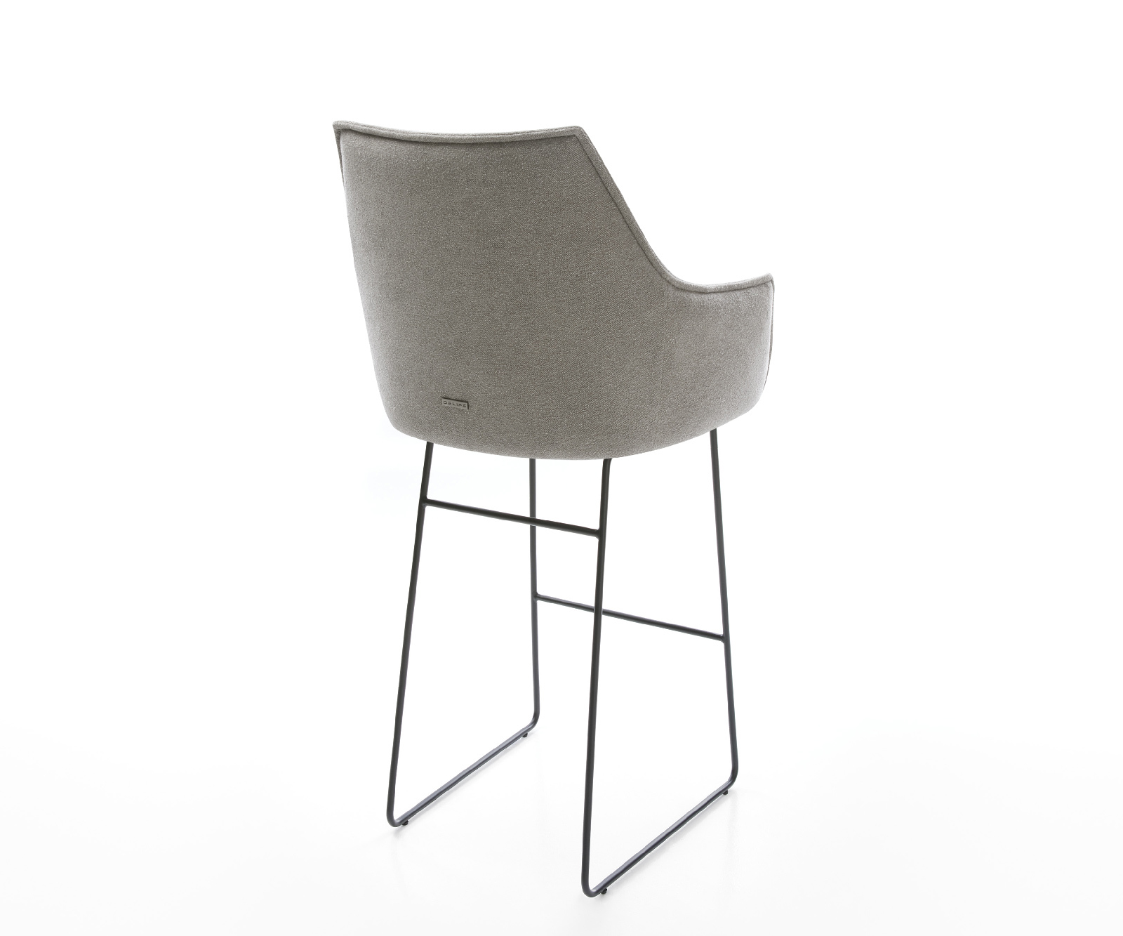 Barová židle Alja s područkami vytváří svým výrazným designem dokonalou harmonii mezi tvarem a komfortem. Elegantní linie působí nadčasově. Propracovaný záhyb na opěradle umně zvýrazňuje jemné vertikální sklady na vnitřní straně a vytváří krásný kontrast k kulaté, tvarově stálé vnější straně. Štíhlé područky zvou k posezení. Vynikající čalounění s integrovaným, obzvlášť kvalitním taštičkovým pružinovým jádrem činí z Alja oblíbené místo u baru – design, kvalita a komfort v dokonalosti.