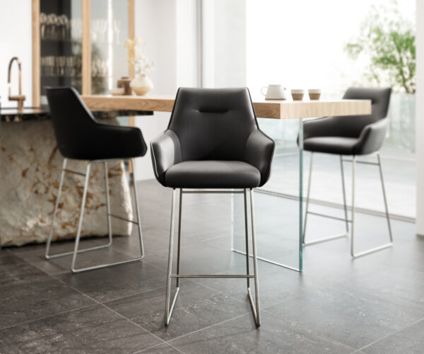 Barová židle Alja pravá kůže černá – barový systém od DELIFE