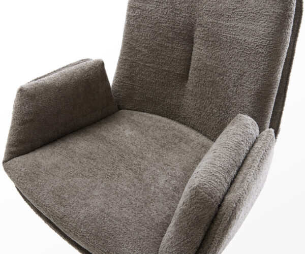 Tato židle zaujme kvalitním potahem z bouclé v teplém tmavě béžovém odstínu. Jemná struktura a klidná barva dodávají nábytku moderní, útulné charisma – ideální pro jídelní kout nebo čtecí koutek.
