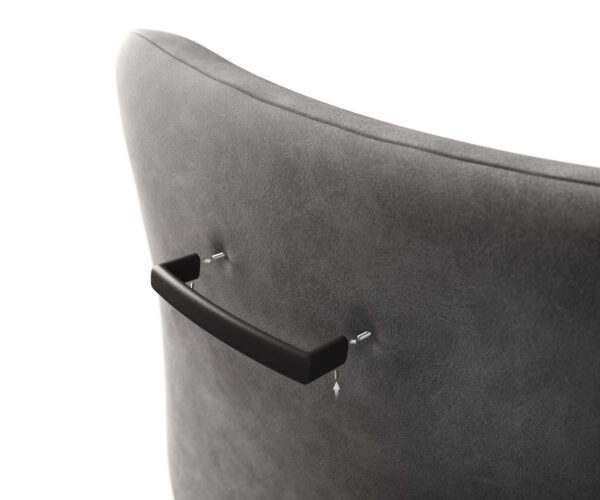 Vyrobený z práškově lakovaného kovu je tento držák barové židle nejen kvalitní a odolný, ale také kompatibilní se všemi sedacími skořepinami našich barových židlí FLEX. Při prvním sestavení vaší židle je držák třeba připevnit na dvě místa označená písmenem „A“ na zadní straně sedací skořepiny.