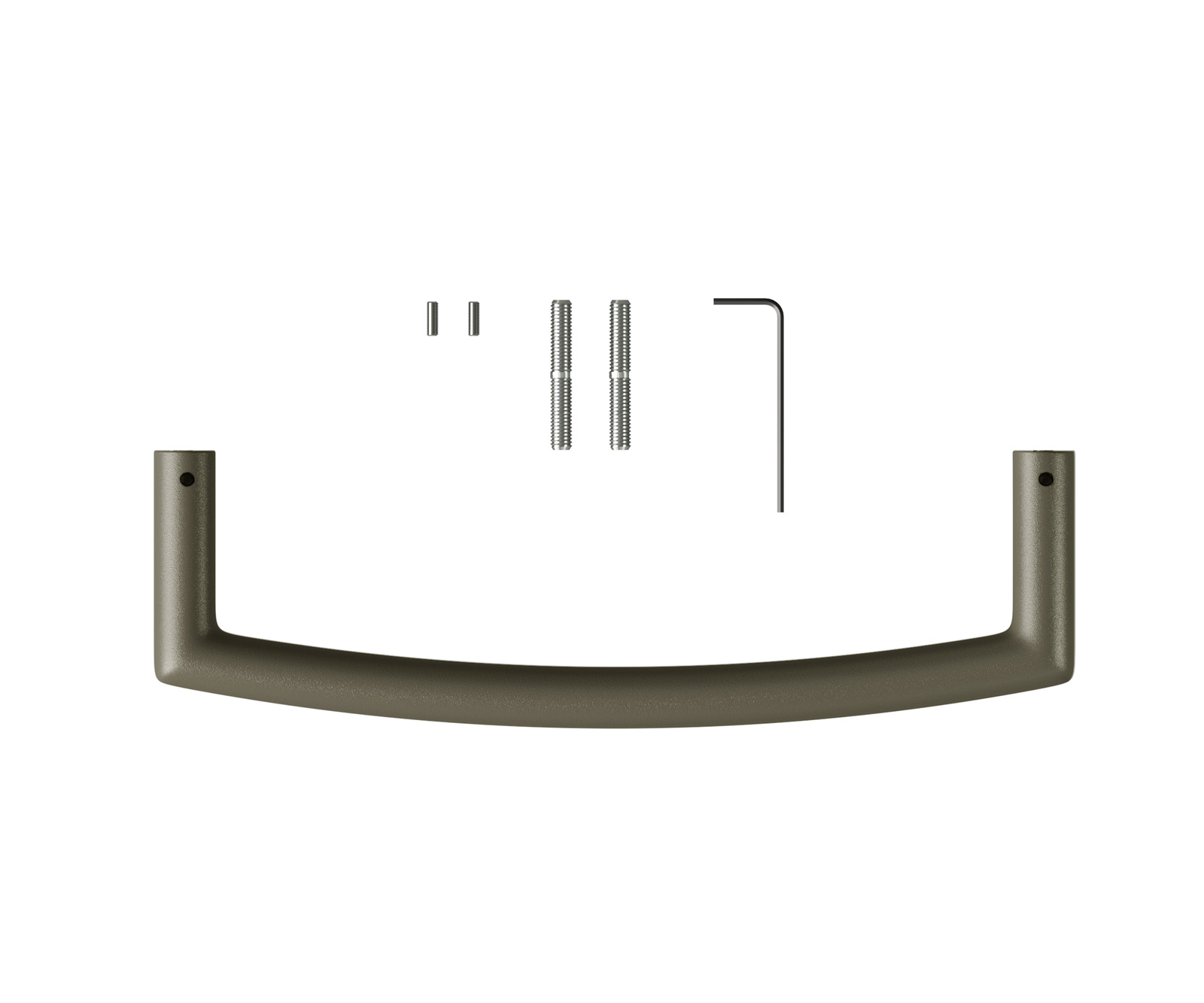 Tento držadlo vyrobené z kvalitního kovu je možné připevnit na každý kus našich barových židlí FLEX. Držadlo je opatřeno propracovaným efektovým povrchem. Cenné pigmenty jsou pečlivě nanášeny ve více vrstvách, až vznikne jedinečný titanový vzhled. Připevňuje se při prvním sestavení židlí na dvě místa označená písmenem „A“ na opěradle.