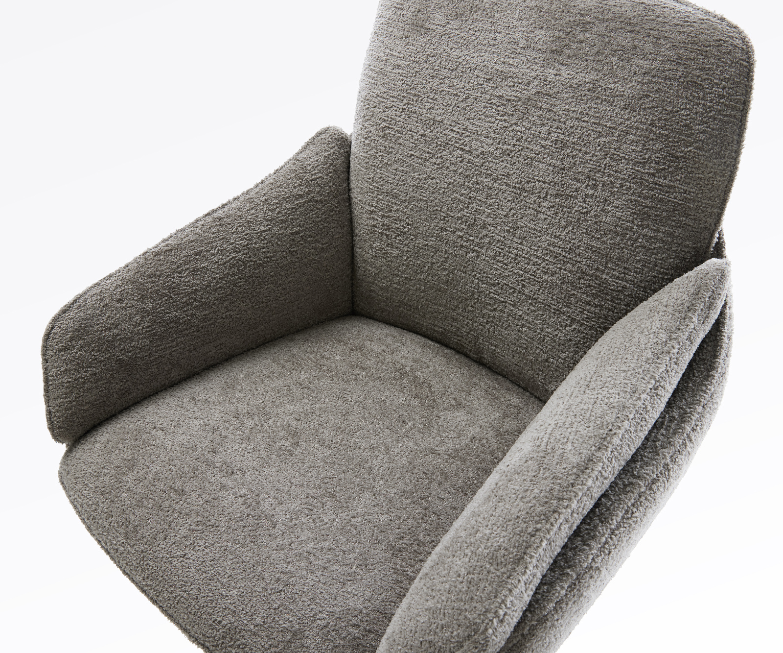 Tato židle zaujme kvalitním potahem z bouclé soft v teplém tmavě béžovém odstínu Schlamm. Jemná struktura a klidná barva dodávají nábytku moderní a útulné charisma – ideální do jídelny nebo čtecího koutu.