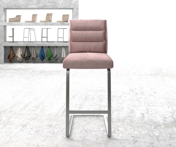 Sedací skořepina Pela působivě dokazuje, že barové židle nemusí být jen elegantní, ale také mimořádně pohodlné. Vysoce kvalitné polstrování s pružinovým jádrem a čalouněné opěradlo v elegantním polštářovém designu zajišťují neuvěřitelně luxusní komfort sezení, který vás bude stále znovu nadchnout. Samet v módním růžovém odstínu je nyní v trendu! Samet totiž okouzlí svou měkkostí a zvlášť elegantním, jemně lesklým vzhledem. Díky použití moderních materiálů pro výrobu sametu je původně velmi citlivá látka dnes mnohem odolnější a vhodná jako potahový materiál na židle.