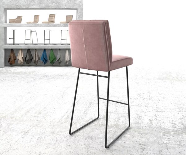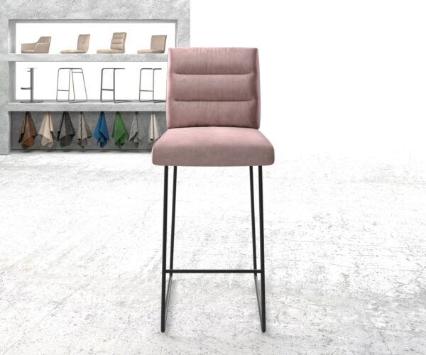 Sedák židle Pela přesvědčivě dokazuje, že barové židle nemusí být jen elegantní, ale také mimořádně pohodlné. Vysoce kvalitné polstrování s pružinovým jádrem a čalouněné opěradlo v elegantním polštářovém designu zajišťují neuvěřitelně luxusní komfort sezení, který vás bude stále znovu nadchnout. Samet v trendy růžovém odstínu vám zajistí módní vzhled! Samet totiž okouzlí svou měkkostí a obzvlášť elegantním, jemně lesklým vzhledem. Díky použití moderních materiálů při výrobě sametu je původně velmi citlivá látka dnes mnohem odolnější a vhodná jako potahový materiál na židle.