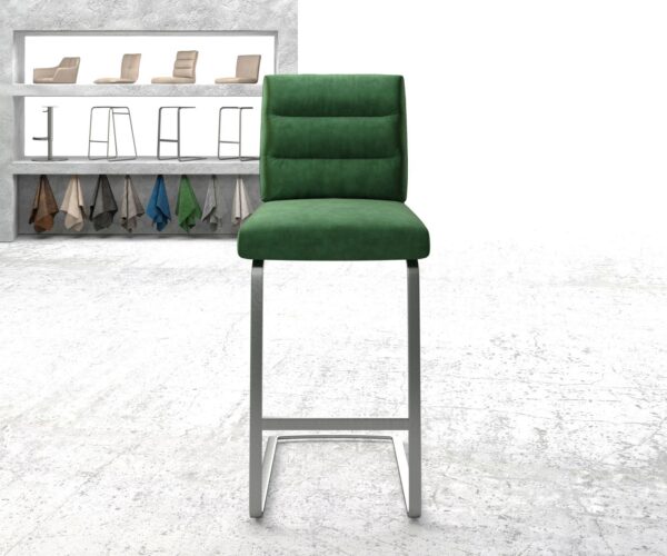 Sedák židle Pela působivě dokazuje, že barové židle nemusí být jen elegantní, ale také mimořádně pohodlné. Vysoce kvalitné polstrování s pružinovým jádrem a čalouněné opěradlo v elegantním polštářovém vzhledu zajišťují neuvěřitelně luxusní komfort sezení, který vás bude stále znovu nadchnout. Samet v tomto nadčasovém zeleném odstínu je v módě! Samet totiž okouzluje svou měkkostí a obzvlášť elegantním, jemně lesklým vzhledem. Díky použití moderních materiálů při výrobě sametu je původně velmi citlivá látka dnes mnohem odolnější a vhodná jako potahový materiál na židle.