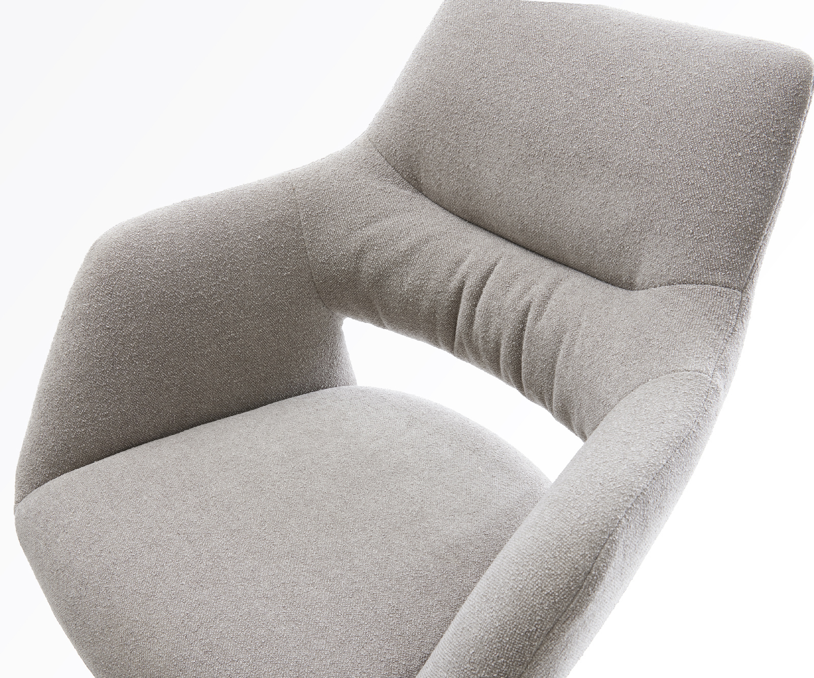 Robustní strukturovaná látka v jemné šedé barvě není jen odolná, ale zajišťuje také decentní, stylový vzhled. Ideální pro intenzivně využívané jídelní prostory s nároky na design a každodenní použitelnost.