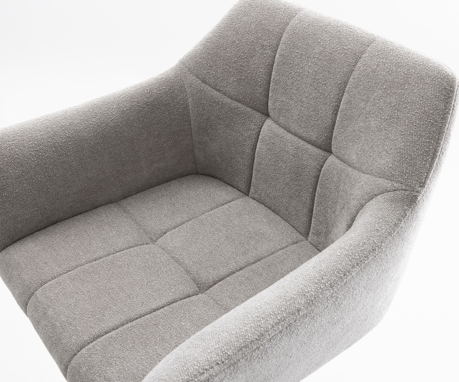 Sedák Yulo nadchne svým příjemně tvarovaným liniovým designem a celkovou podpůrnou konstrukcí. Jemně zakřivené područky a ergonomicky tvarované opěradlo poskytují pohodlnou oporu, zatímco jemně strukturované čalounění zajišťuje vysoký komfort sezení. Ideální, pokud chcete sedět pohodlně a uvolněně i delší dobu.