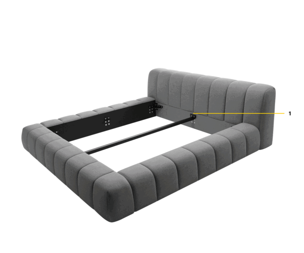 - Střední příčka a kovové díly zajišťují nejen stabilitu čalouněné postele, ale také umožňují připevnění lamelového roštu v různých výškách