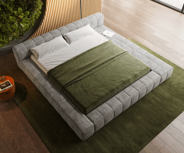 S naším komfortním designovým čalouněným postelovým rámem si můžeš vytvořit své osobní místo pohody. Náš postelový rám ti umožní s tvým oblíbeným roštem a matrací proměnit čalouněnou postel v oázu relaxace a odpočinku. Zařiď si ložnici přesně podle svých individuálních představ a potřeb a užívej si komfort své na míru šité designové čalouněné postele. Díky kvalitnímu čalounění naše čalouněné postelové rámy lákají nejen ke spánku, ale také k sezení a odpočinku. Promyšlená konstrukce nabízí stabilní a pohodlné místo k sezení pro příjemné chvíle s knihou nebo relaxační momenty. Navíc může být plocha využita i jako praktická odkládací plocha. Užij si všestranný komfort našich čalouněných postelových rámů.
