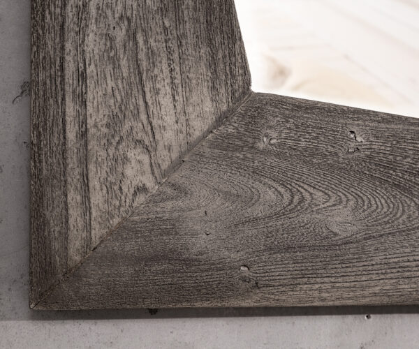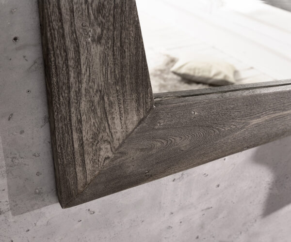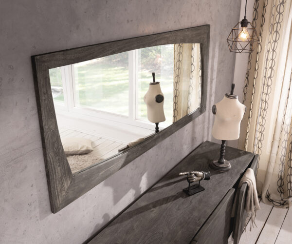 Velkoplošné zrcadlo Wyatt se skládá z pravoúhle orientované zrcadlové plochy s nepravidelně vedenými bočními liniemi. Tomuto tvaru se harmonicky přizpůsobuje rám z kvalitního akáciového dřeva. Organický design a jedinečné kresby masivního dřeva působí přirozeně a elegantně.