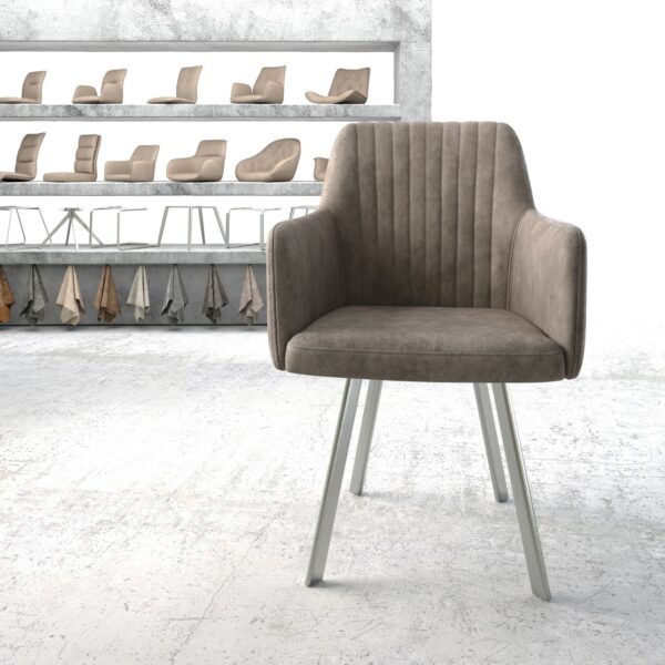 Díky své klasické formě a celoplošným područkám je jídelní židle Greg nejen velmi elegantní, ale také mimořádně pohodlná a šetrná k páteři. Jemné, vertikální prošití na opěradle dokonale podtrhuje ušlechtilý celkový dojem této nadčasové židle s jistým stylem.