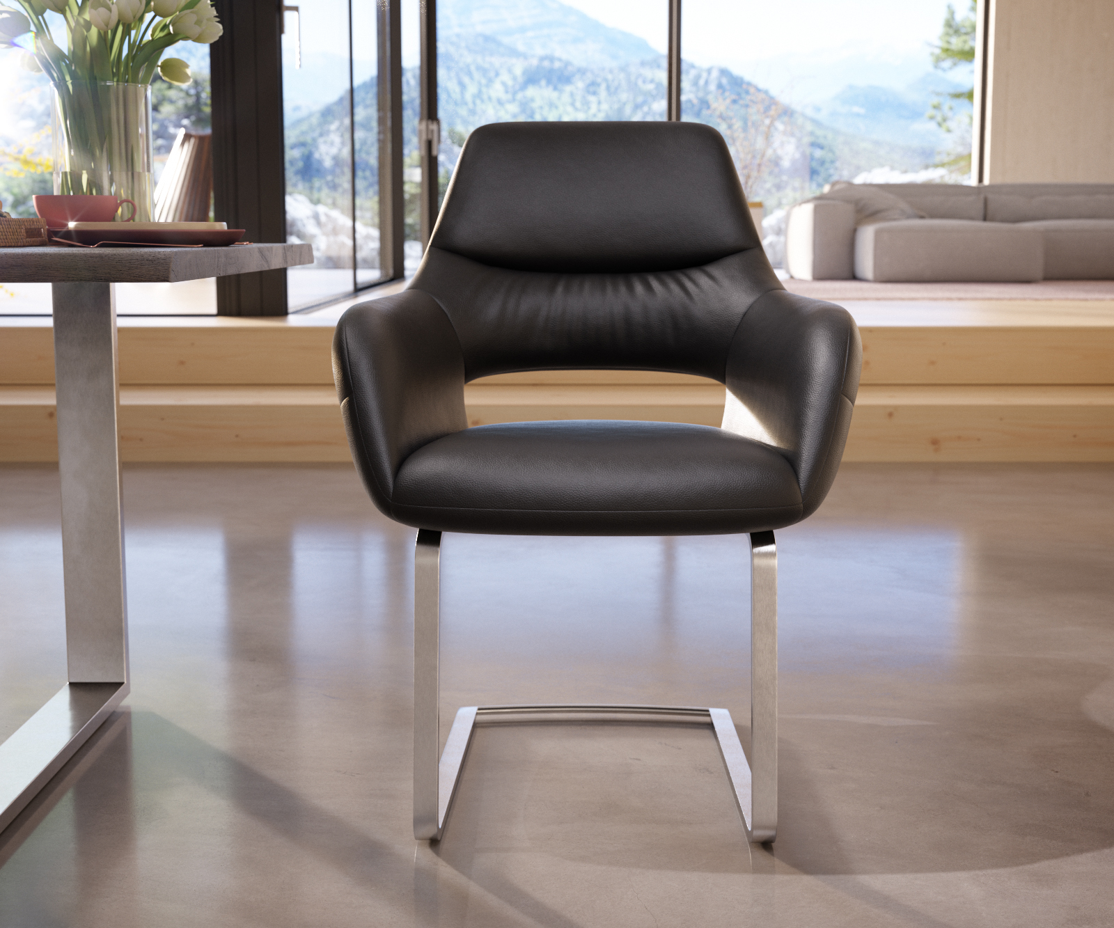 Plochá podnož dělá každou sedací skořepinu příjemně lehkou a elegantní. Typická houpací funkce freischwingeru zajišťuje zvlášť šetrné a zdravé sezení pro záda.
