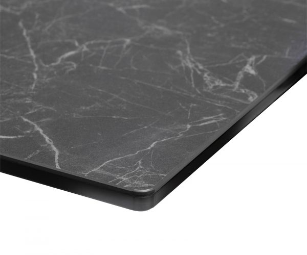 Deska stolu Edge je vyrobena z Laminamu, slavné italské keramiky. Září nadčasově střízlivou antracitovou barvou a je známá svou odolností a dlouhou životností.
