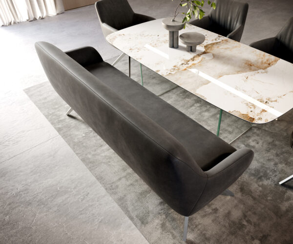 Naše židle Flex a jídelní stoly Edge dokonale navazují na designovou řeč lavice: tvary, linie a podnože spolu harmonicky ladí. Jídelní stoly Edge o délce 2 metry ideálně doplňují tuto lavici. K tomu doporučujeme židle Flex Yago, Zoa, Pejo, Heira nebo Xana, které si můžete na přání vybrat ve stejném potahu. Tak vznikne jídelní prostor, který ukazuje smysl pro styl – dokonale sladěný a plný charakteru.