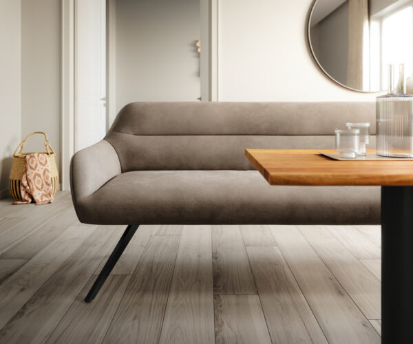 Potah z mikrovlákna v barvě taupe vintage dodává lavici teplý, elegantní vzhled. Jemně měnící se odstín přináší do prostoru hloubku a přirozenost, zatímco jemná vintage struktura látce propůjčuje ušlechtilý, lehce oživený nádech. Vysoce kvalitní mikrovlákno zaujme sametovým dotykem a vysokou odolností. Snadná údržba a tvarová stálost zajišťují, že i při každodenním používání zůstává příjemně měkké – pro komfort a styl v jídelně.