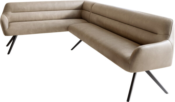 Rohová lavice Taya spojuje lehkost a moderní eleganci. Jemné lemování a jemně zakřivený tvar vytvářejí harmonický celek. Uvnitř zajišťuje vysoce kvalitní sendvičová konstrukce z pěny (RG 40 kg/m³) v kombinaci s taštičkovými pružinami a vlnitou podnoží mimořádný komfort sezení a dlouhodobou tvarovou stálost. Dva harmonicky sladěné čalouněné prvky tvoří rohové řešení s plynulým, elegantním dojmem. Speciálně vyvinutá kovová podnož nabízí mimořádnou stabilitu a nevyužívá žádné viditelné podpěry – inovativní řešení, které spojuje volně zavěšený design s spolehlivou stabilitou.
