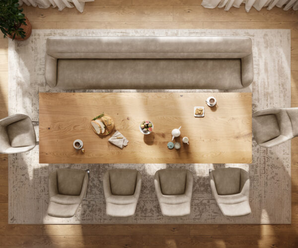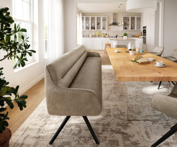 Naše židle Flex a stoly Edge perfektně navazují na designovou řeč lavice: tvary, linie a podnože spolu harmonicky ladí. Stoly Edge o délce 3 metry jsou na to optimálně přizpůsobené. K tomu doporučujeme židle Flex Yago, Zoa, Pejo, Heira nebo Xana, které si můžete na přání vybrat ve stejném potahu. Tak vznikne jídelní prostor, který ukazuje smysl pro styl – dokonale sladěný a plný charakteru.