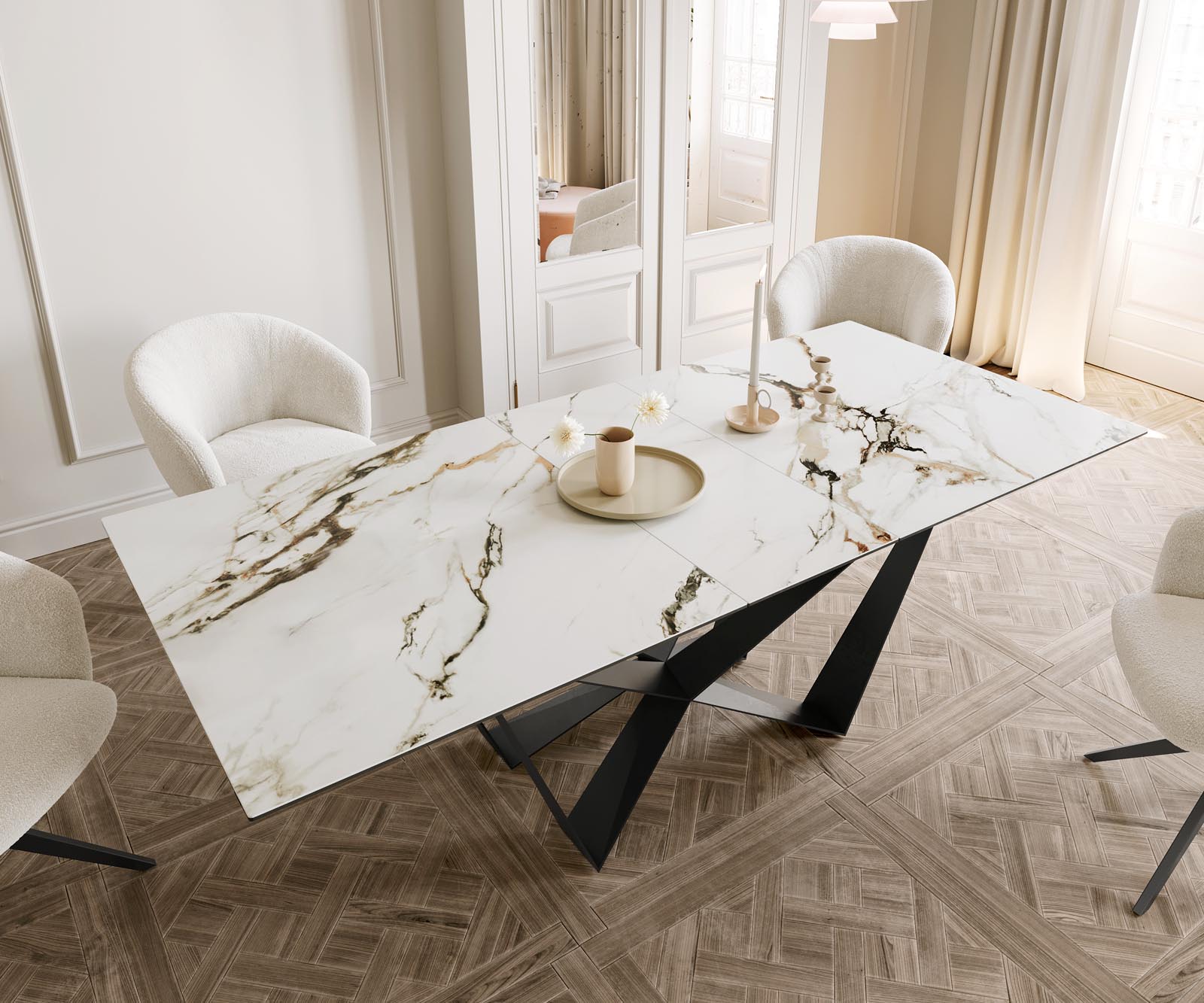 Opulentní, nespoutaný a plný radosti ze života – jídelní stůl Edge s keramikou Calacatta Luxe